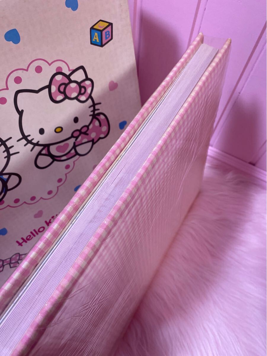 ベビーキティとダニエルがとってもかわいいアルバムです☆大きくて存在感もあるので部屋に飾ってもかわいいかと思います。未使用ですが長期自宅保管品のため変色している箇所などがございます。神経質な方や少しでもお気になさる方はご遠慮下さいませ。箱サイズたて約36センチ×横約35センチです。必ず自己紹介欄も一読お願い致します。
