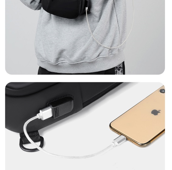 ボディバッグ 斜め掛けバッグ 新品 メンズ ワンショルダーバッグ 多機能 軽量 収納鞄 USBポートリュックサック 防水加工 /黒
