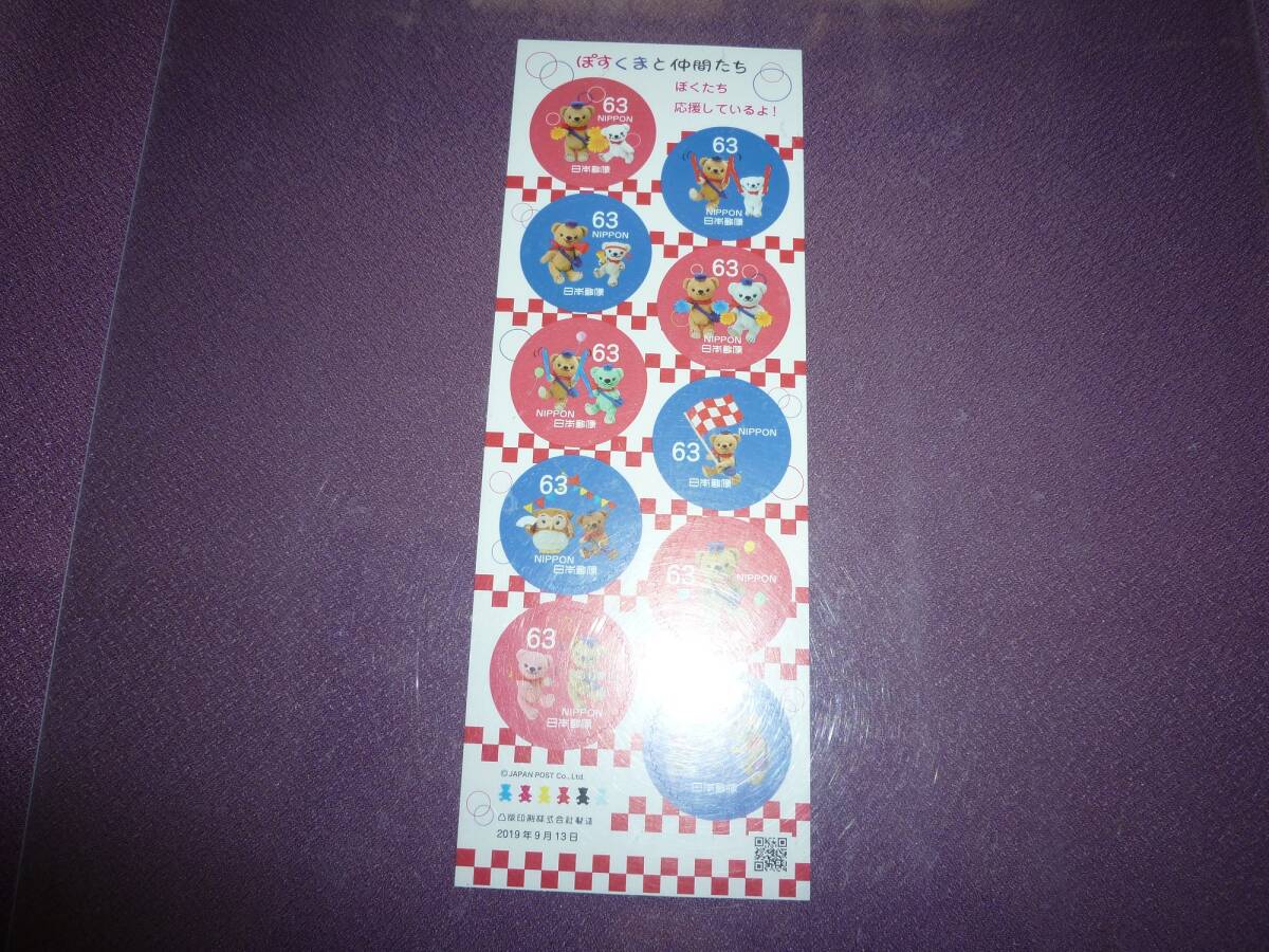未使用 2019年 63円 ぼすくまと仲間たち 630円シート 1枚