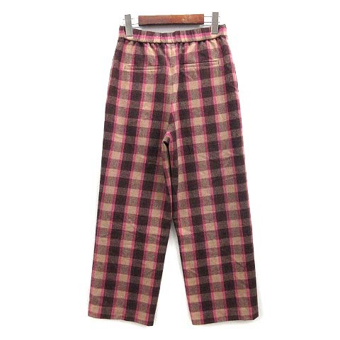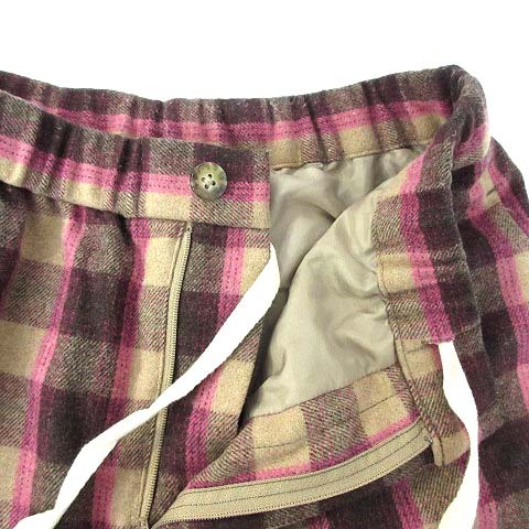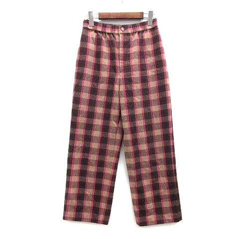 マカフィー MACPHEE トゥモローランド フランネル チェック イージー ストレートパンツ ウール ブラウン ピンク 34 12042404703