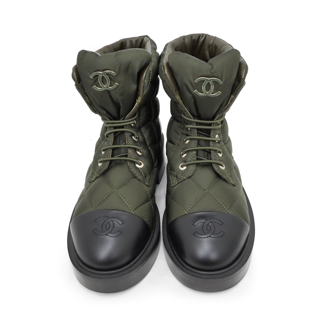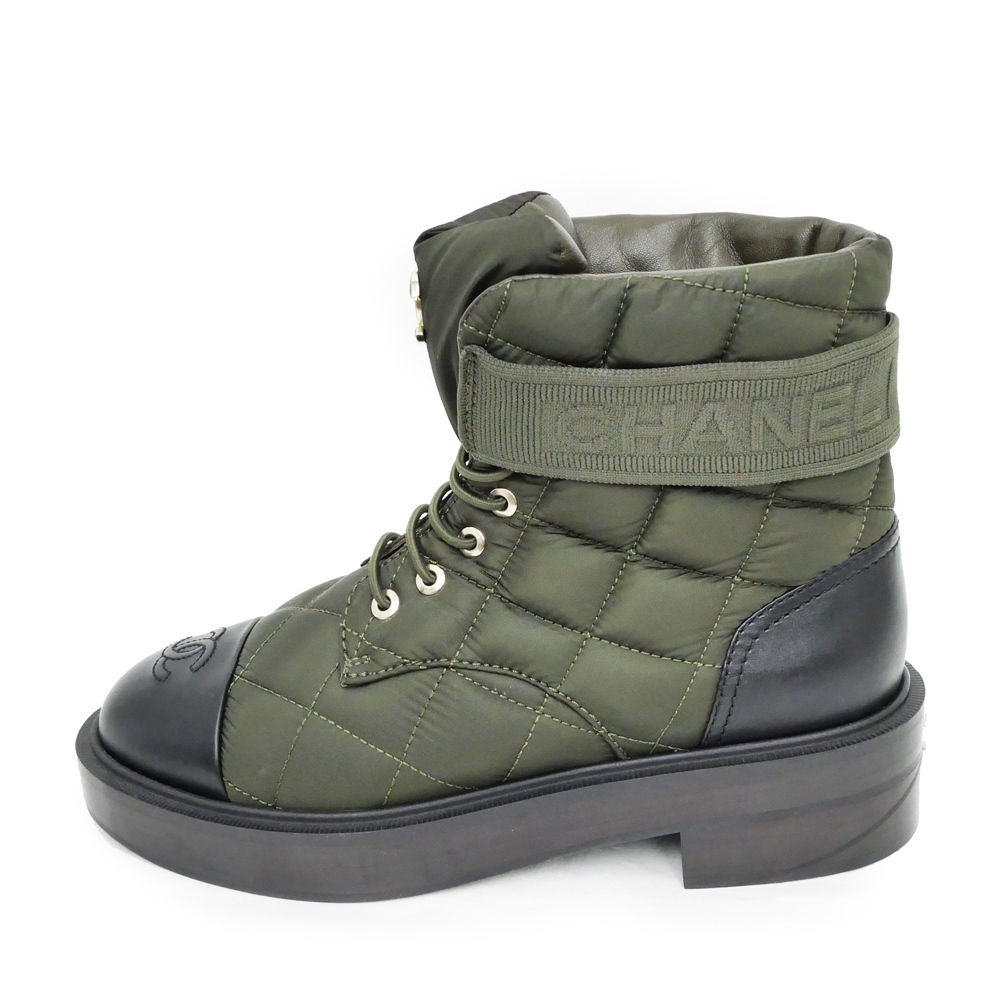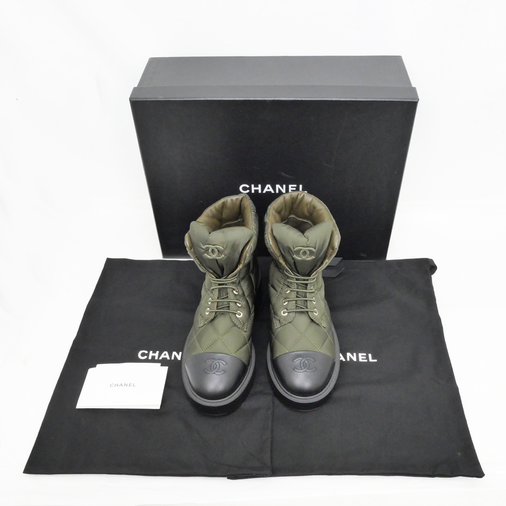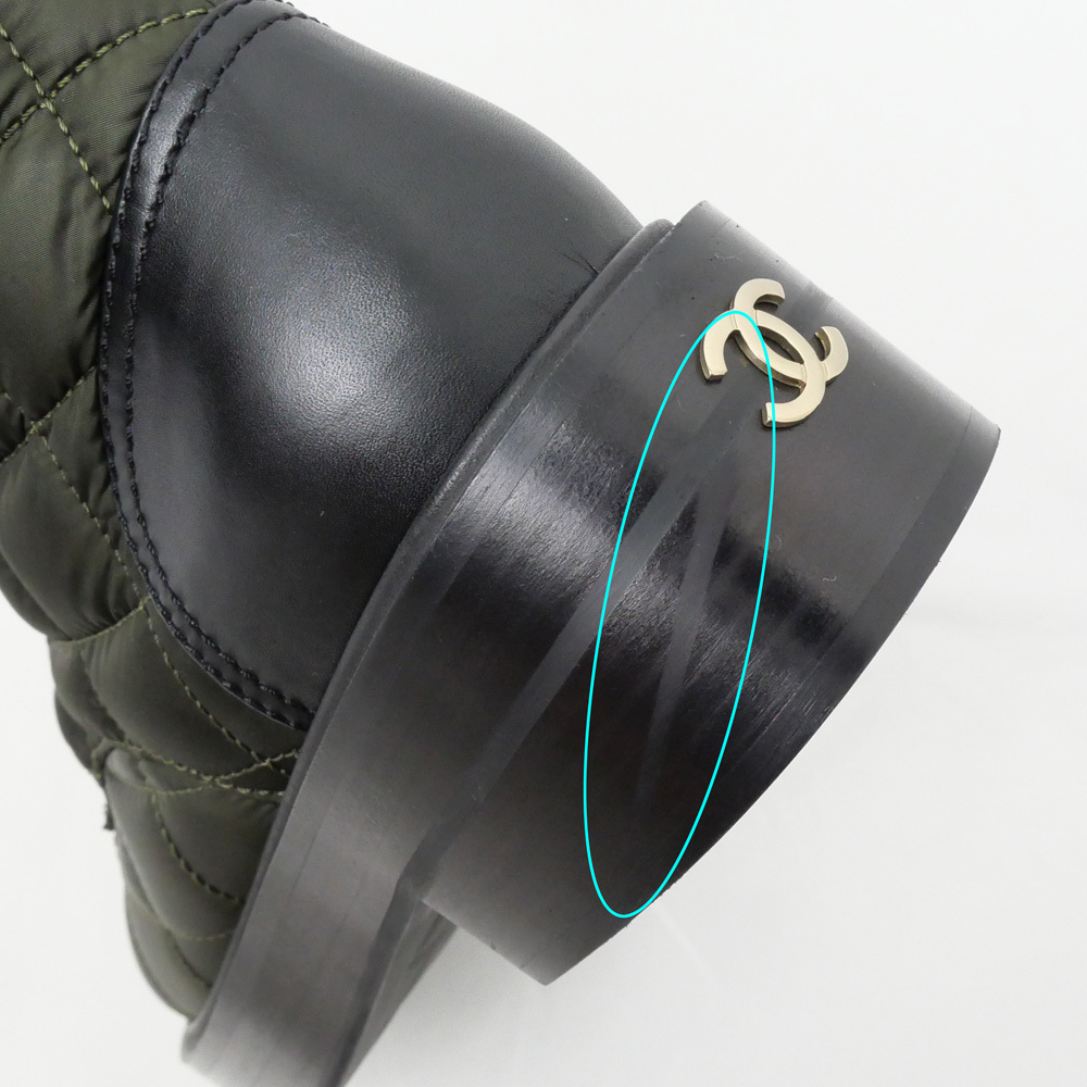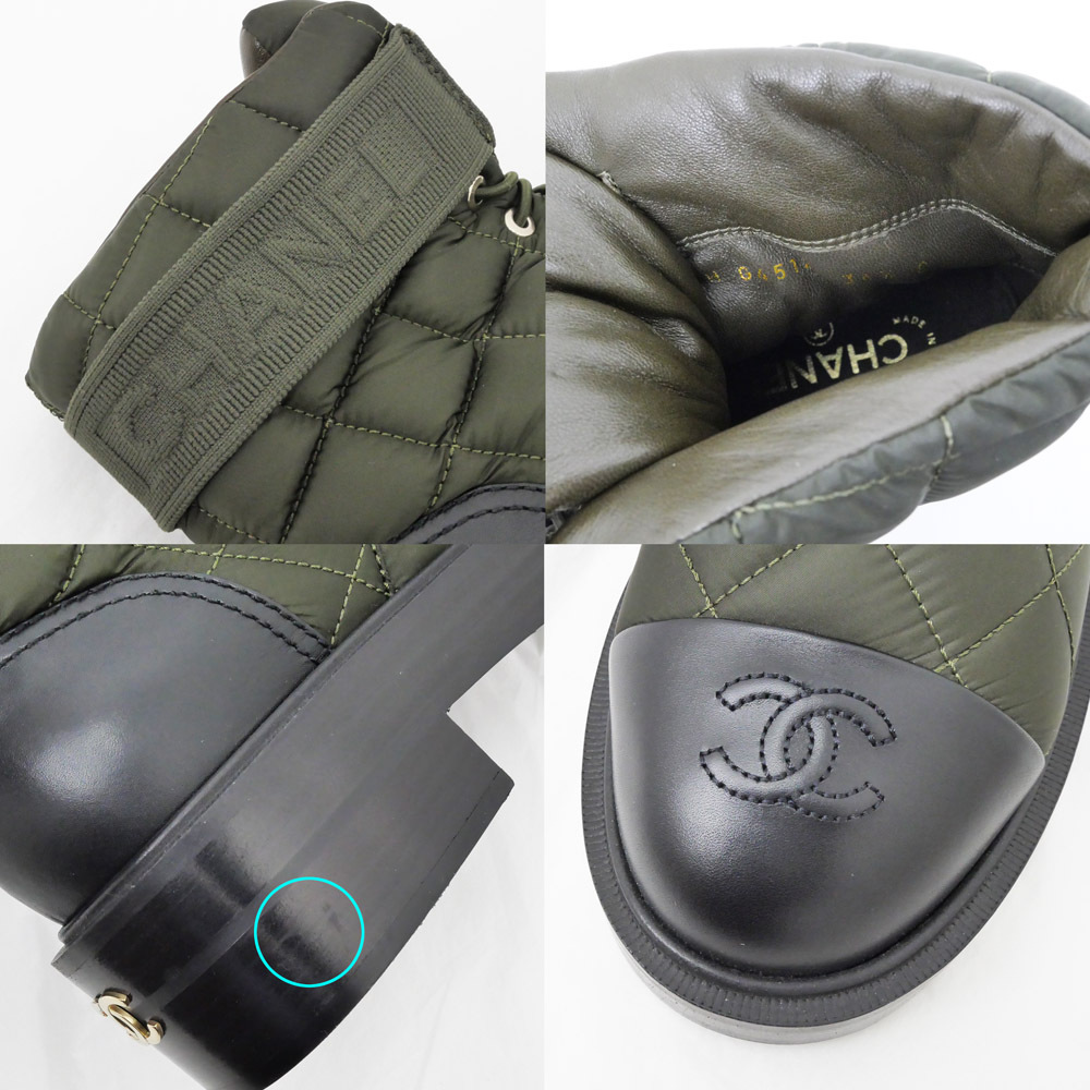 【名東】シャネル ココマーク ナイロン レザー ショートブーツ カーキ×ブラック G45125 36 1/2 23.5cm レディース 靴