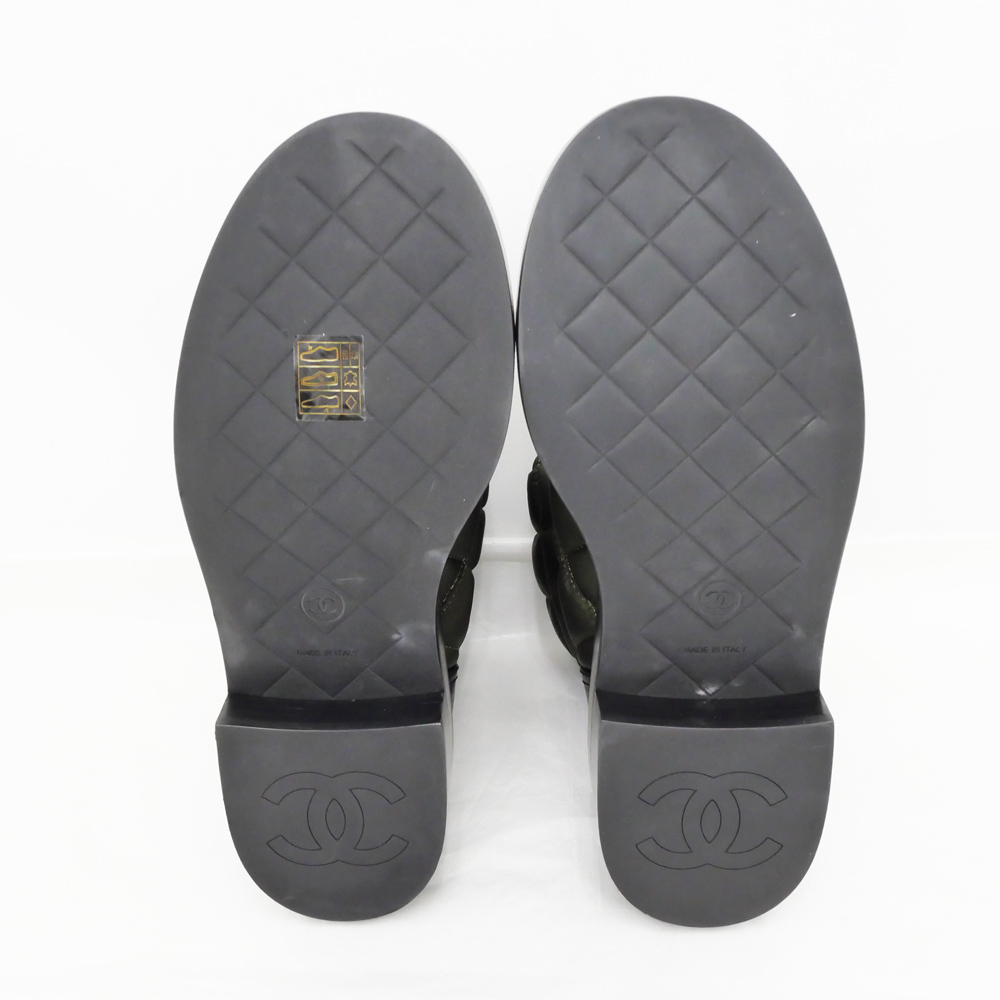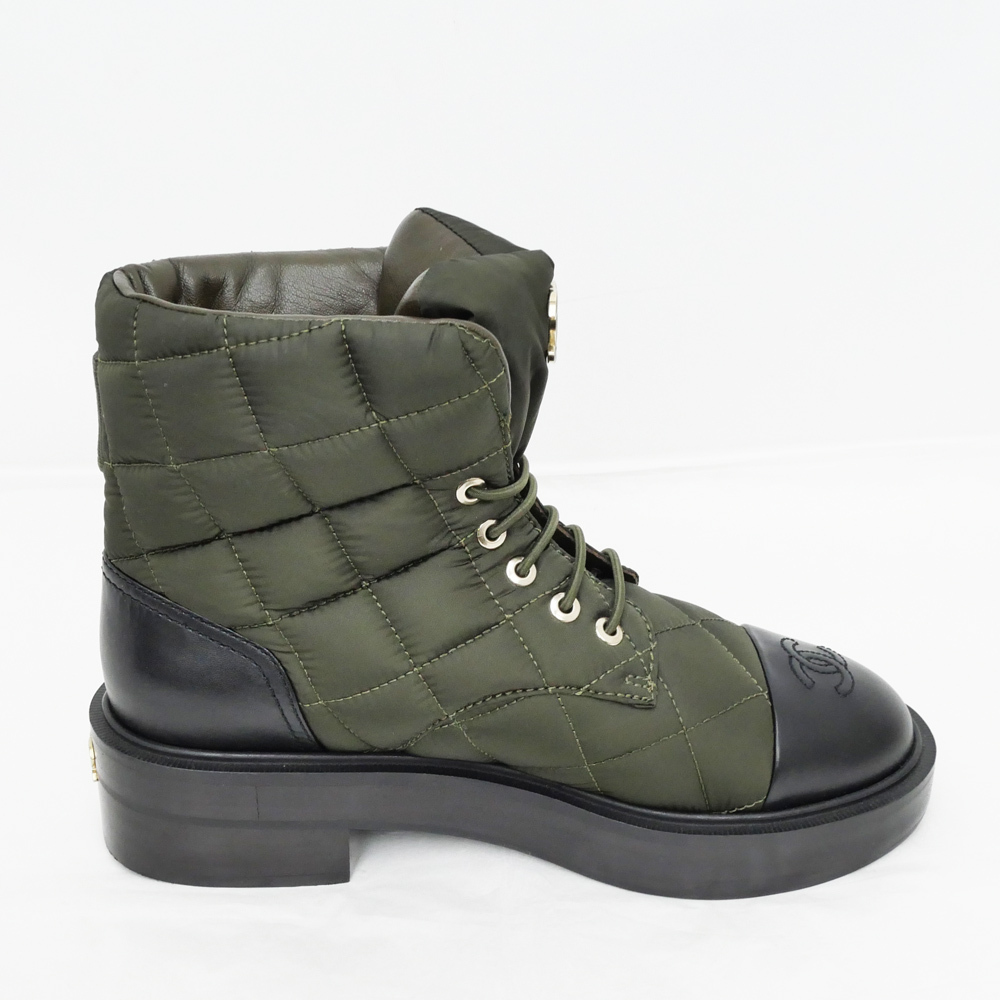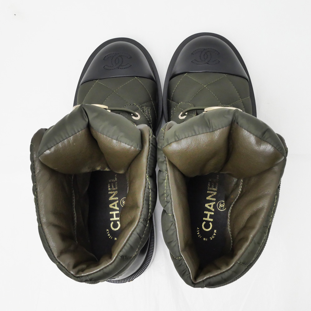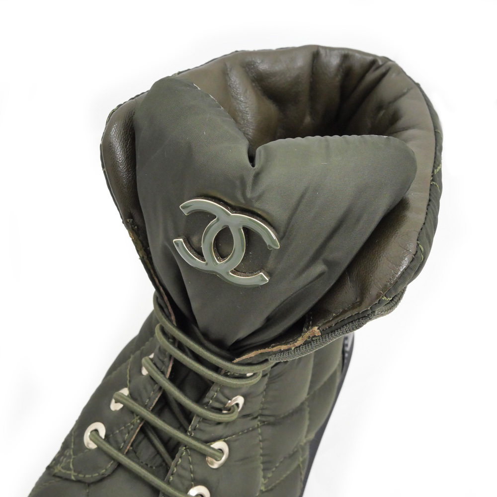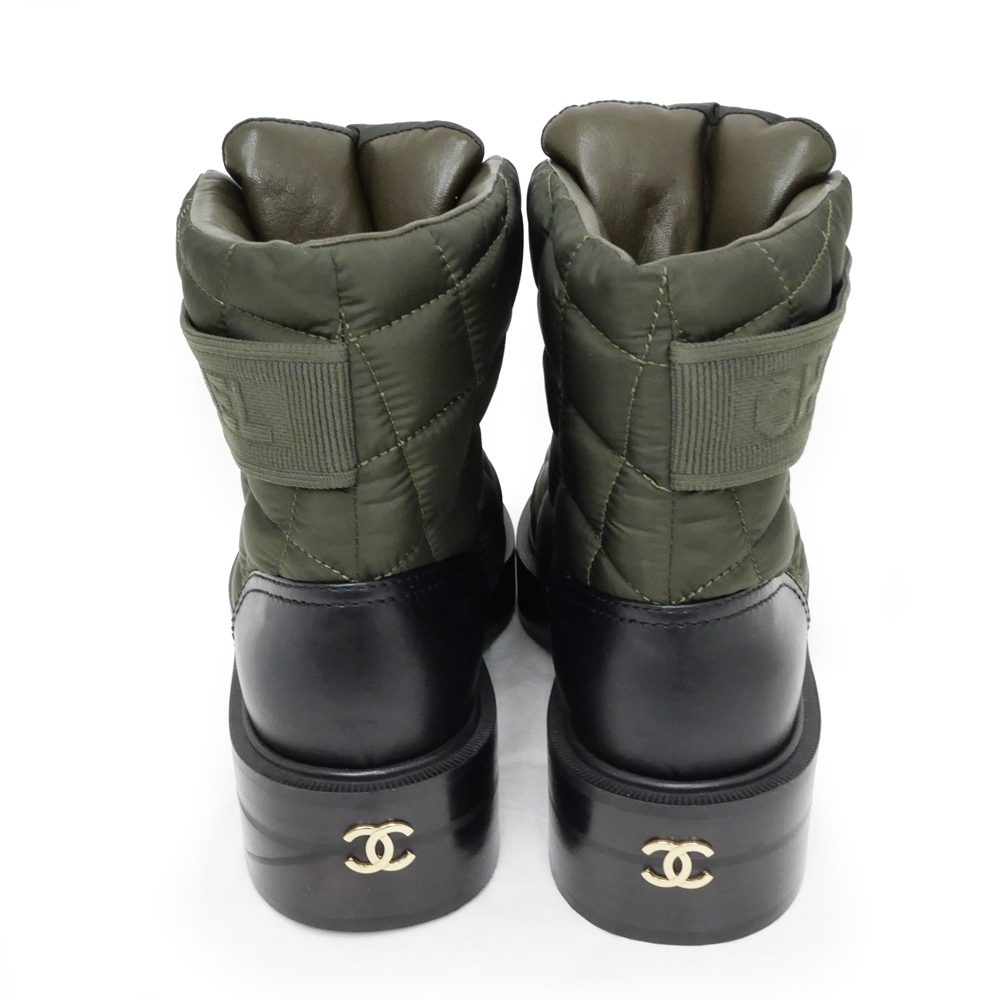 【名東】シャネル ココマーク ナイロン レザー ショートブーツ カーキ×ブラック G45125 36 1/2 23.5cm レディース 靴