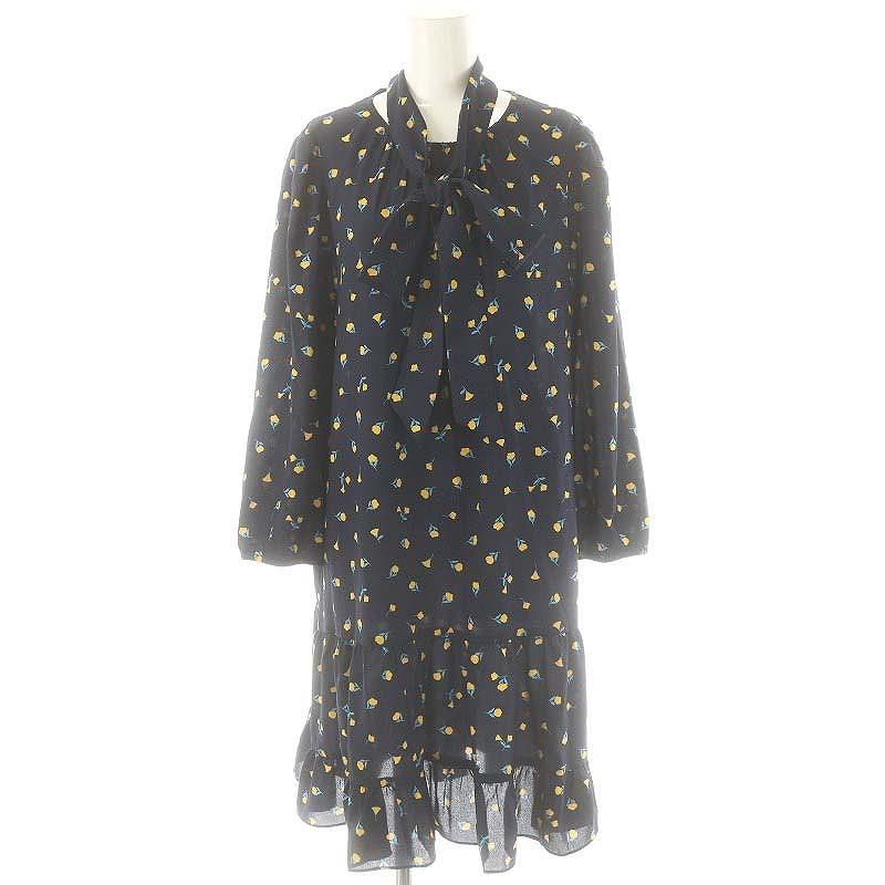 ケイトスペード KATE SPADE Dainty Bloom Shift Dress ワンピース 膝丈 総柄 七分袖 M 紺 /HK ■OS レディース