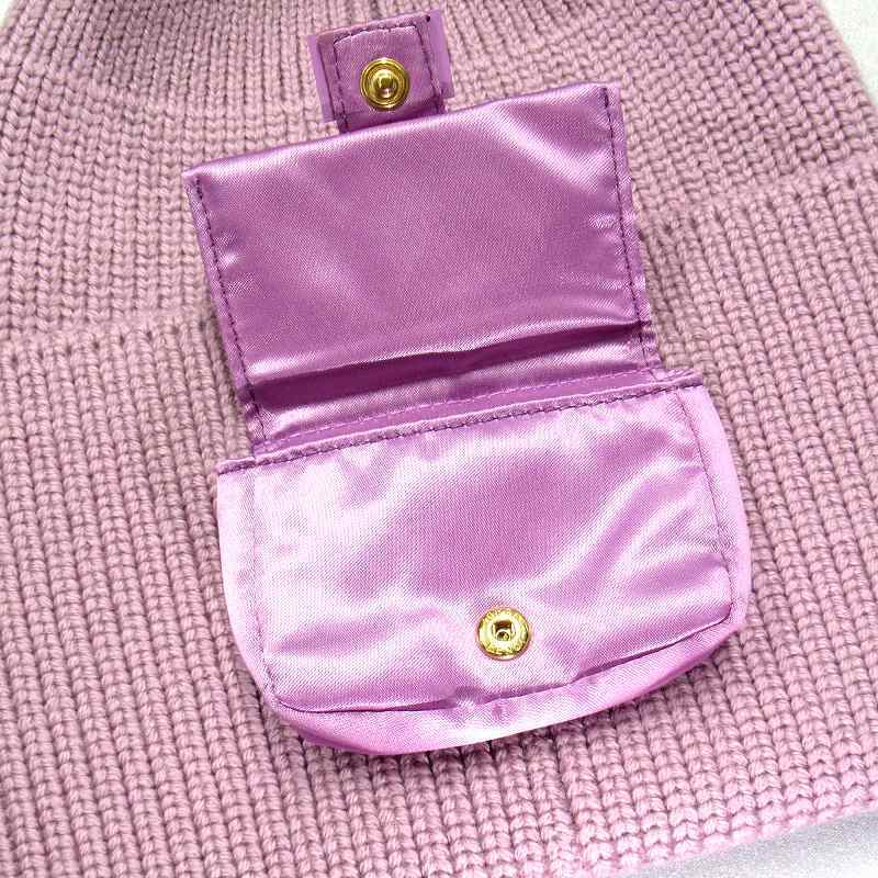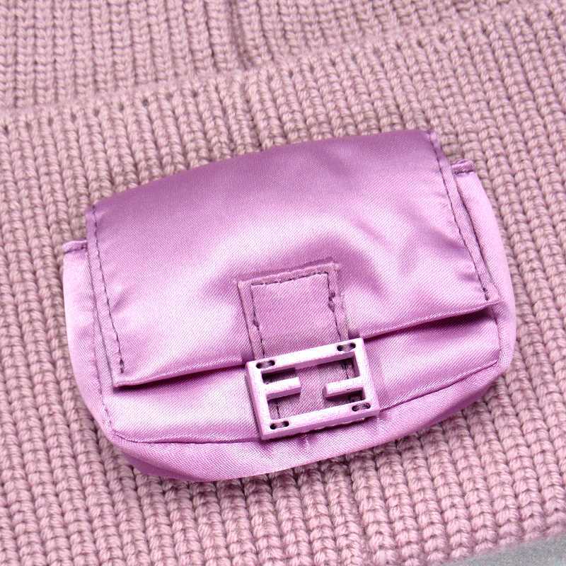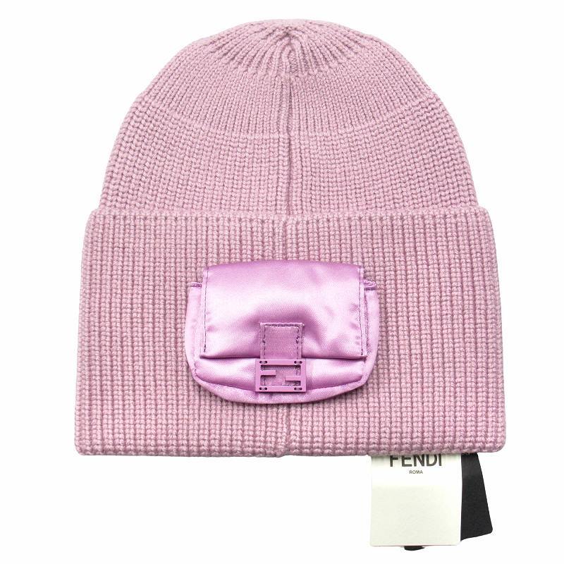 未使用品 23ss フェンディ FENDI バゲット ポーチ付 ビーニー ニットキャップ ウール ナイロン 帽子 FFロゴ金具 FXQ938 S/M ピンク▽2