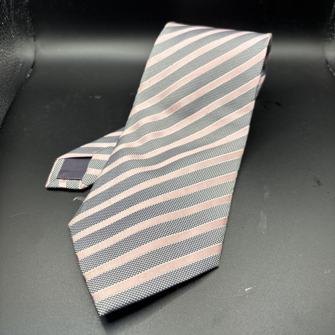 グレーとピンクのストライプデザインのPARKLANDネクタイ。