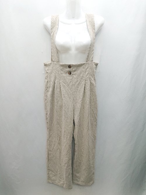 ◇ ⊇ JUNOAH ジュノア オーバーオール サイズL ベージュ レディース E