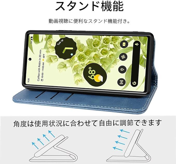 mj-N102★Google Pixel 7 Pro ケース 手帳型 高質PUレザー Google Pixel 7 Pro カバー Pixel 7 Pro ケース 耐衝撃 内蔵マグネット開閉式 ベルトなし スマホケース おしゃれ カードポケット スタンド機能 便利 スプラット同梱 携帯ケース (ブルー)