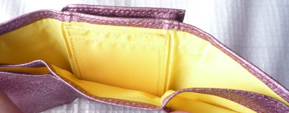 札入れ1つ、ポケットが2つあり、札入れの中は黄色です。