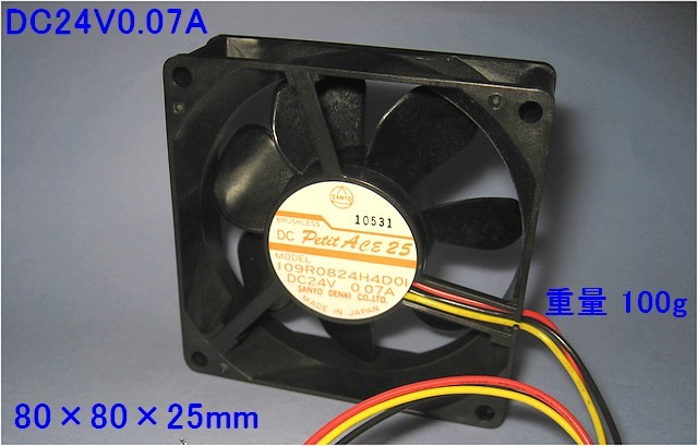 ■ SANYO DENKI ■ DC24V 0.07A 日本製 ■ 大きさ:80mm×80mm×25mm 重量:100g ■ 風量 消費電流が少ないため風量は弱めです。 ■ 12Vでも回転します(微風) ■ レターパックライト、は簡易梱包(厚さ30mm以内)になります。 ■ データシート https://www.mouser.com/ds/2/471/San_Ace_80R25_E-1286766.pdf | ||