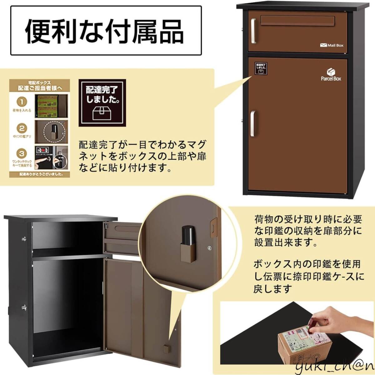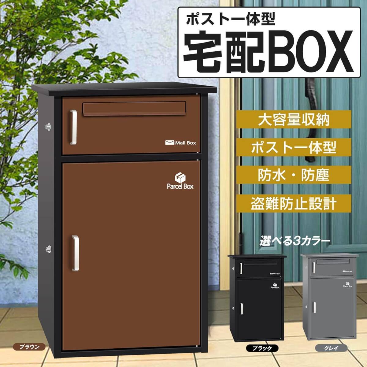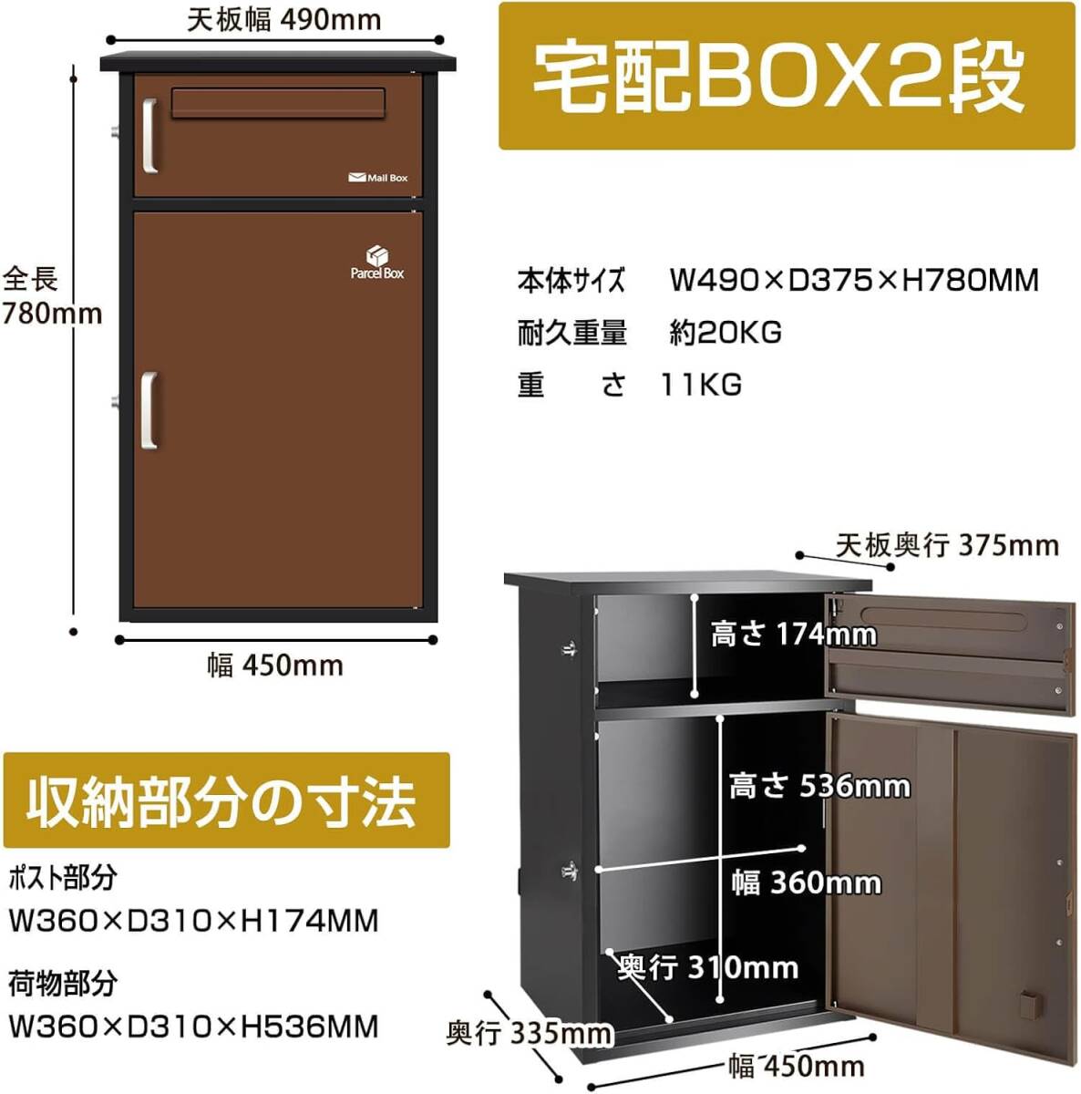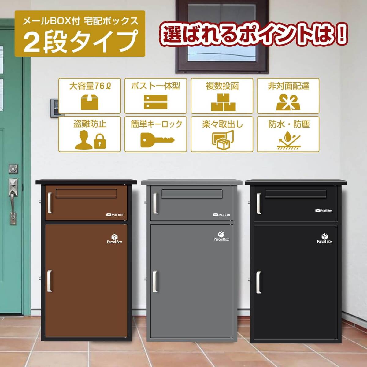 宅配ボックス 宅配BOX 置き配ボックス ブラウン ポスト一体型 2段式 屋外 防水 大容量 戸建て用 個人宅用 盗難防止
