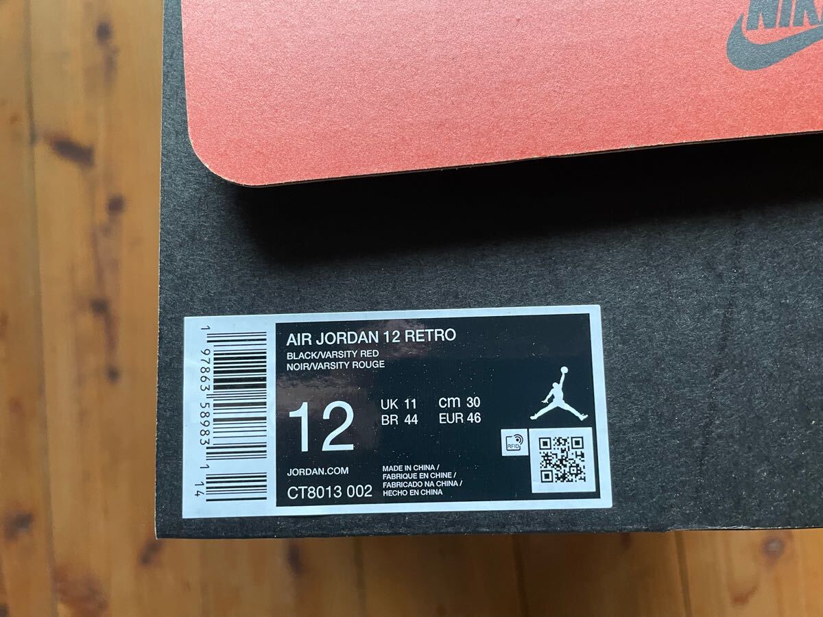 30cm Nike Air Jordan 12 Retro Flu Game Black Varsity Red 2025 ナイキ エア ジョーダン12 レトロ フルゲーム ブラック バーシティレッド