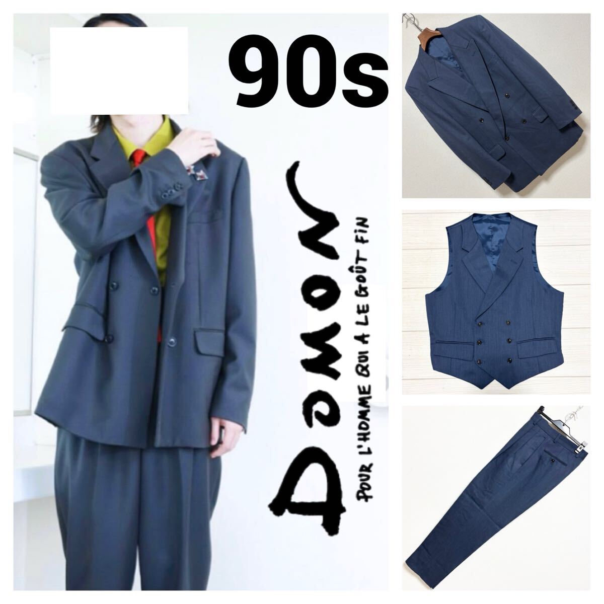こちらは、90s 菅田将暉似■DOMON ドモン■アーカイブ ベスト付 ダブルスーツセット M ネイビーブルー スリーピース 2タック バギー ワイドシルエット ベネシャン レア 希少 常田大輝 ヴィンテージオールド