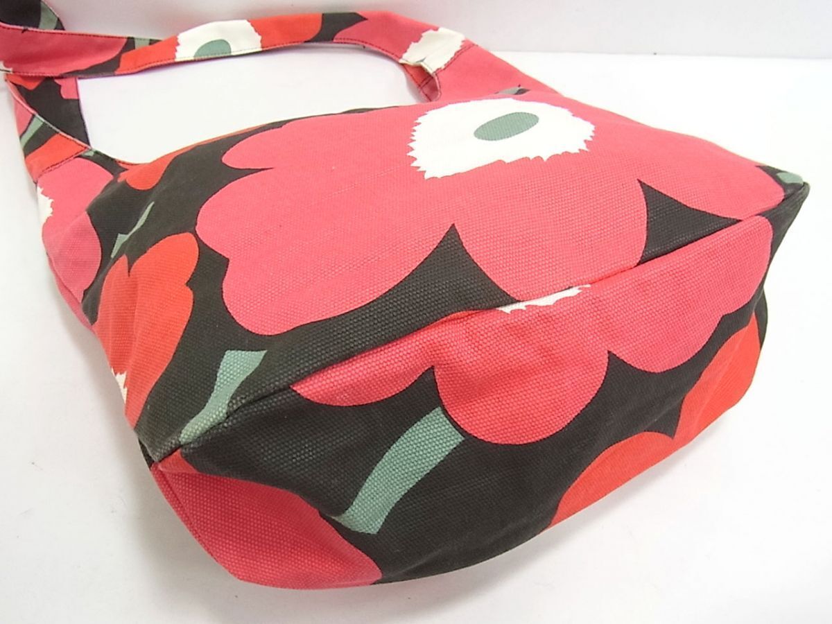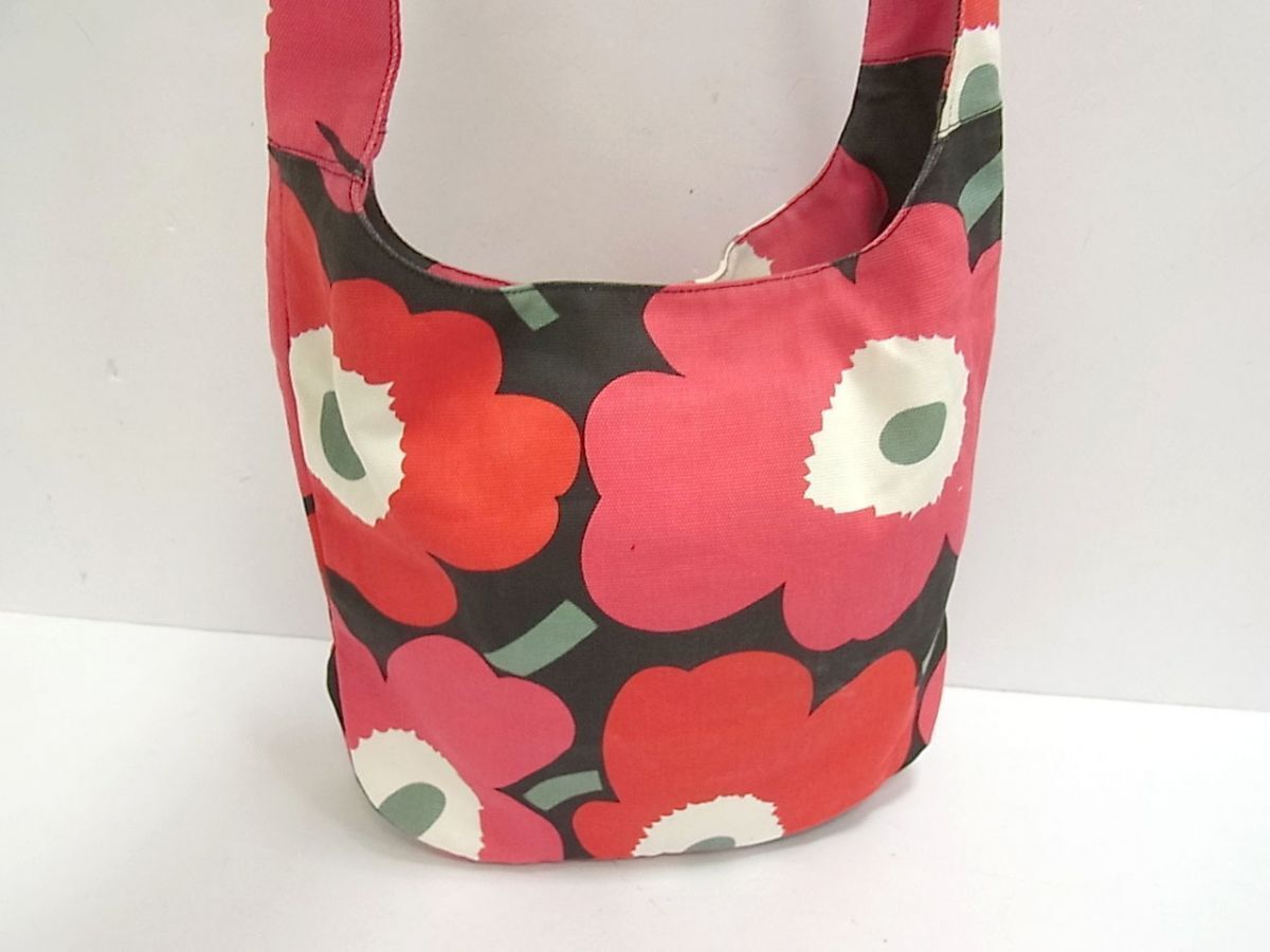 $ 極美品 $ 大人気!■ marimekko ■ マリメッコ ウニッコ ■ 花柄 総柄 綿100% 素材 ・ ワンショルダーバッグ ■ 黒 ピンク系■ 送料無料