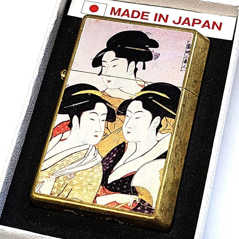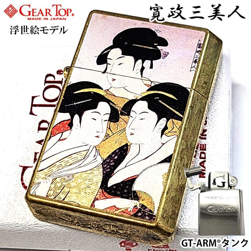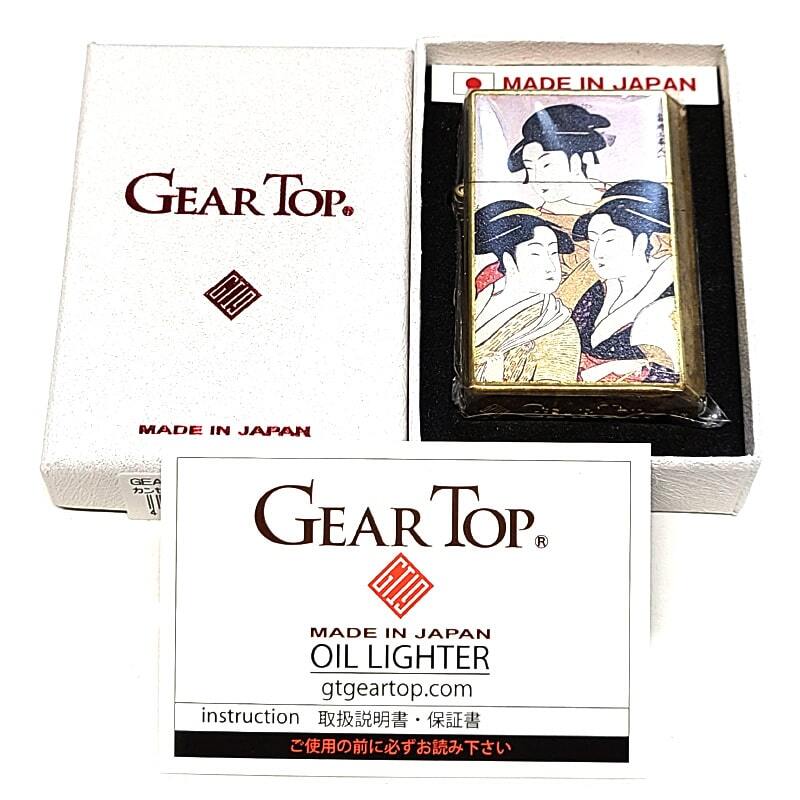 商品説明 | 「GEAR TOP 浮世絵 寛政三美人」 ワイルドブラスの本体に喜多川歌麿の代表的な浮世絵「寛政三美人」が描かれたギアトップライターです。 鮮やかな浮世絵が目を引く和柄デザイン。 全体に燻し加工を施し、ビンテージ感漂う仕上がりとなっています。 GEAR(道具)TOP(頂点)を目指す高品質な日本製スモーキングブランド。 揮発防止キャップ「GT-ARM」によりオイルの揮発を抑制・防止して、オイル充填後、1日20回使用で約30日間使用可能。 (外部環境や使用方法により変動します。) 「ポケットの中に世界最高水準のオイルライターを!」をスローガンに、熟練の職人による日本の最先端の金属加工技術を施し開発。 実用性、品質ともに高く、かつ先例のない「オイル持ち」を実現した『ECO』なオイルライターとなっています。 プレゼントにも非常にお勧めな精巧な日本製ライターです。 |