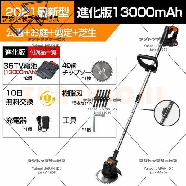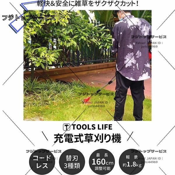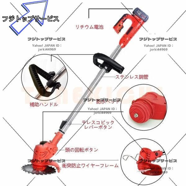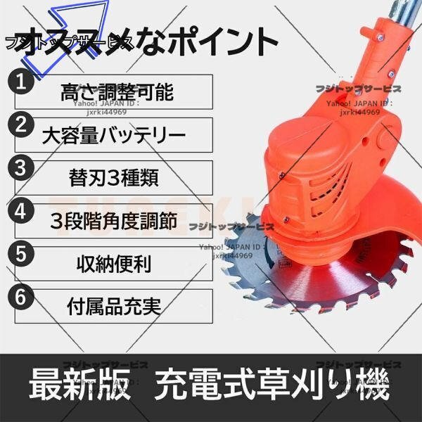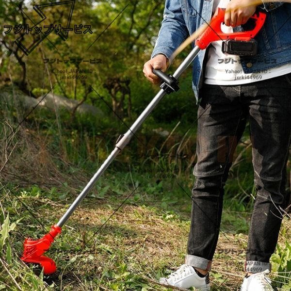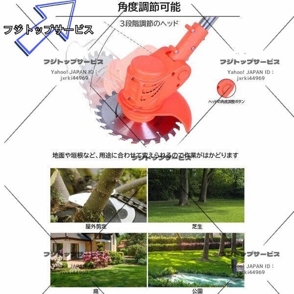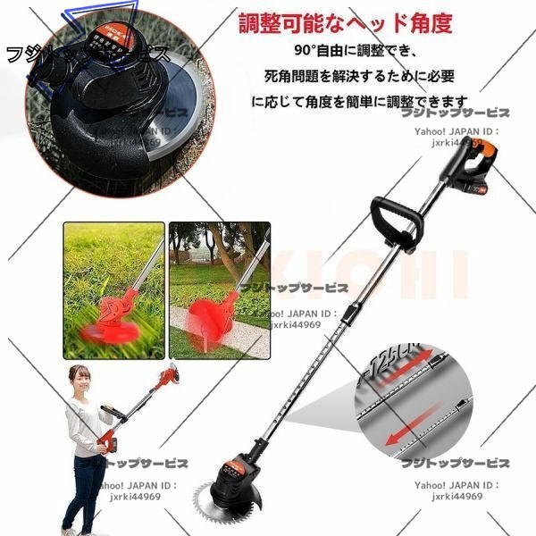 即納 草刈機 充電式 電動草刈り機 コードレス 伸縮 角度調整 雑草 替刃付き バッテリー2個付き 無線 軽量 女性 日本語説明書 PSE認証