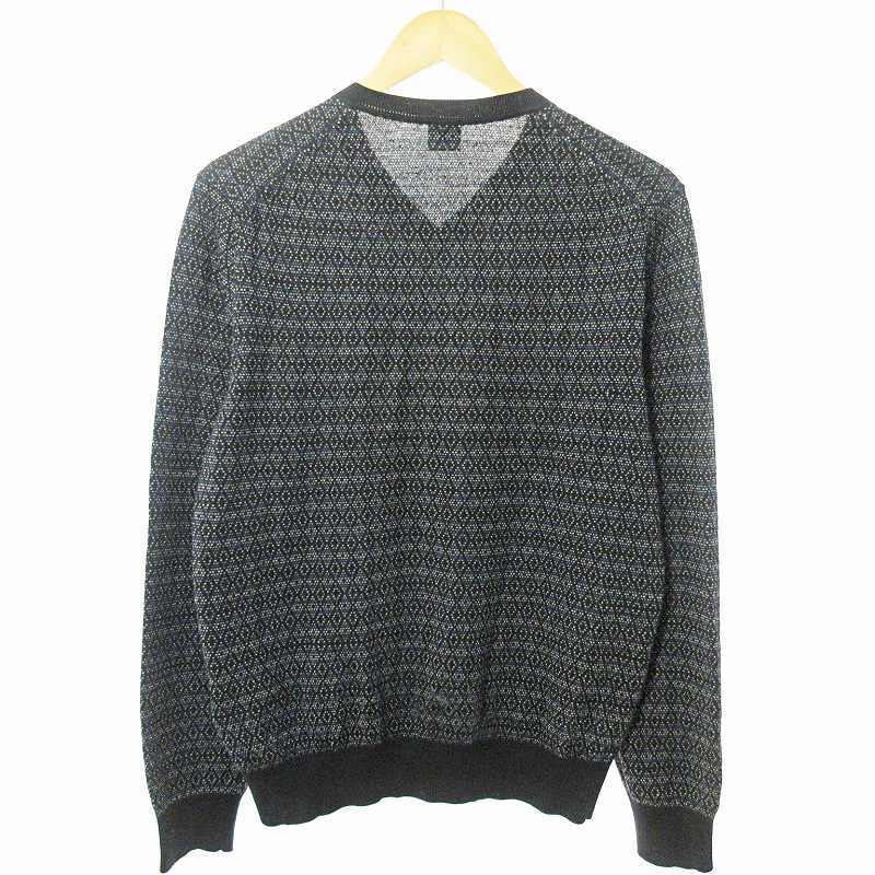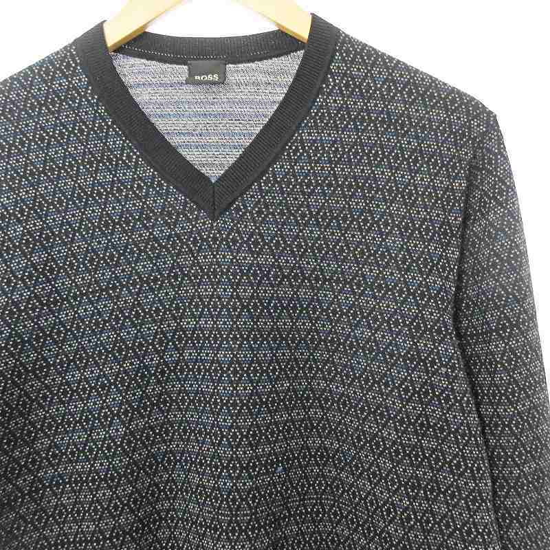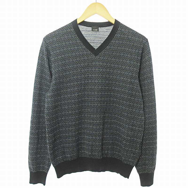 ヒューゴボス HUGO BOSS セーター ニット カットソー 長袖 ウール カシミア混 シルク混 総柄 S 黒 0227 IBO65 メンズ