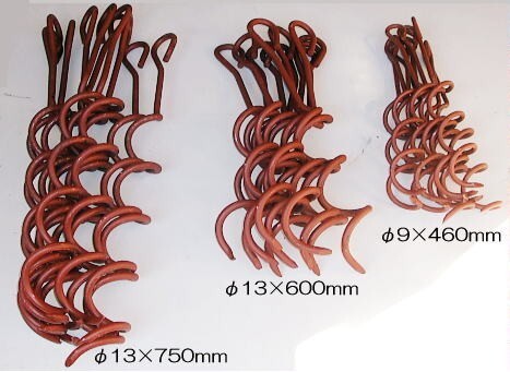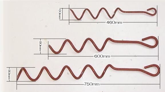 (50本セット) ラセン杭 大 φ13×600mm 赤錆止め塗装 らせん杭 (ビニールハウス、パイプ倉庫の固定に) 螺旋杭 日本製