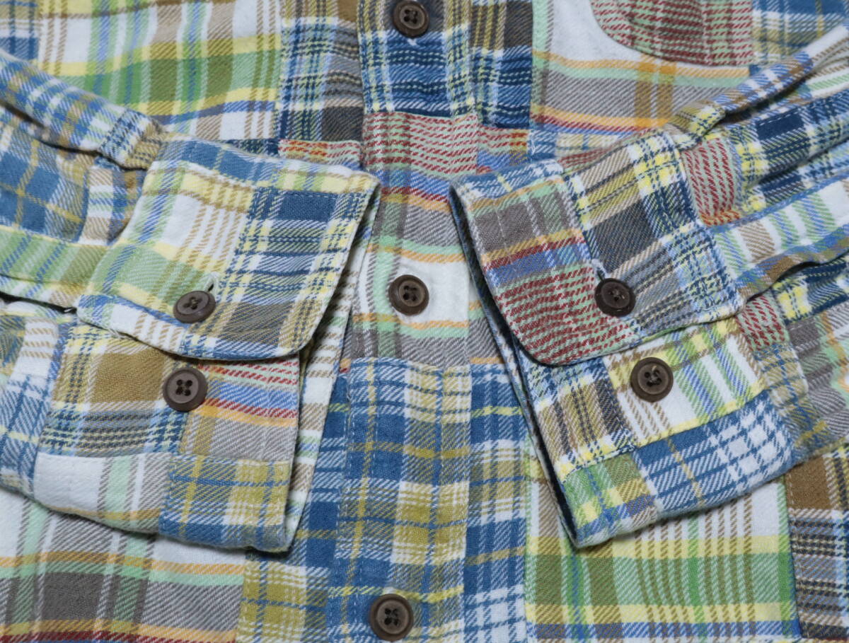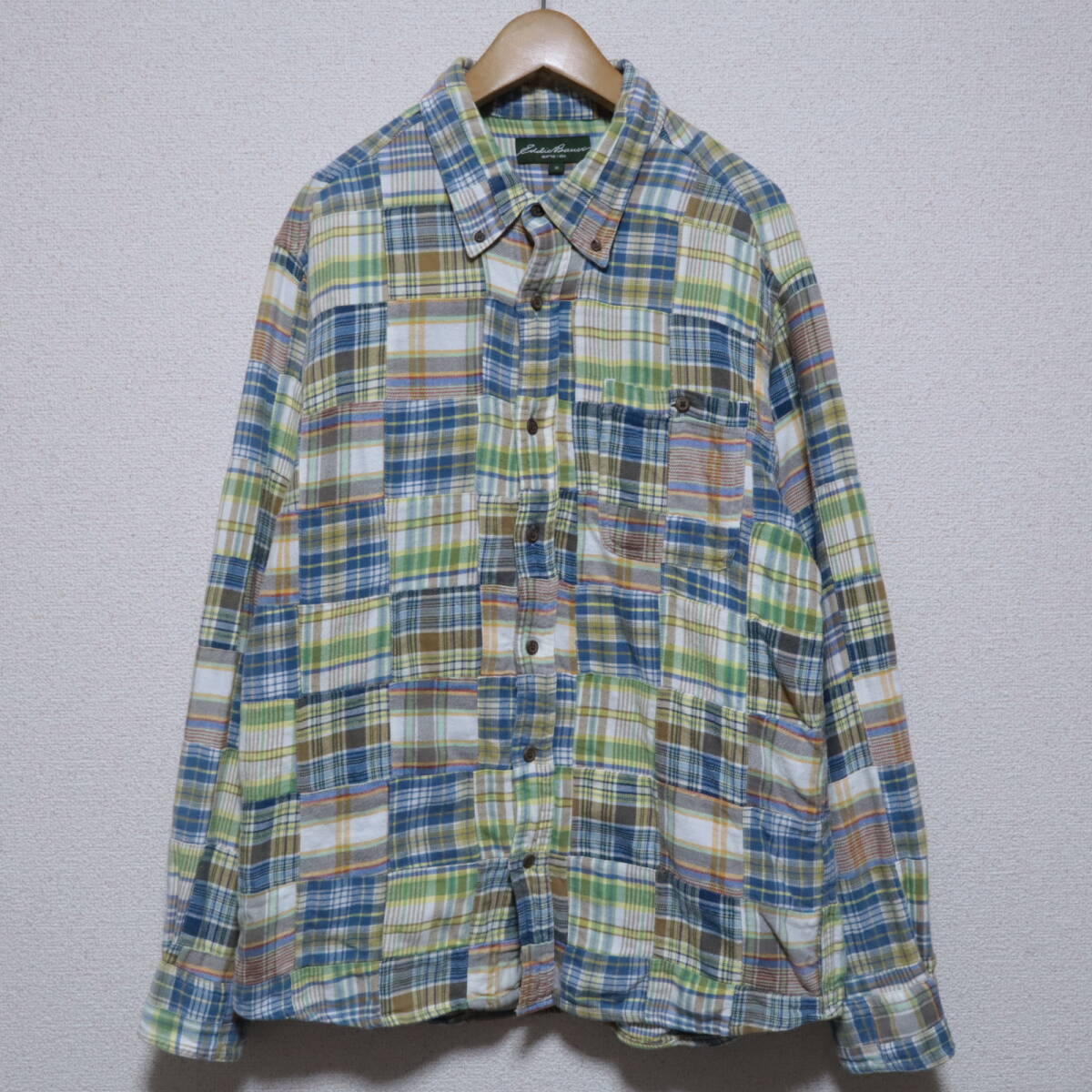 ■Eddie Bauer エディバウアー■パッチワーク ネル シャツ■メンズ M 長袖 チェック コットン ボタンダウン■モザイク アメカジ 古着