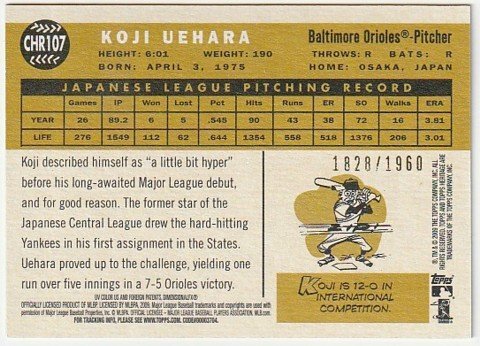 上原浩治 ルーキーカード 2009 TOPPS HERITAGE CHROME RC ROOKIE #/1960