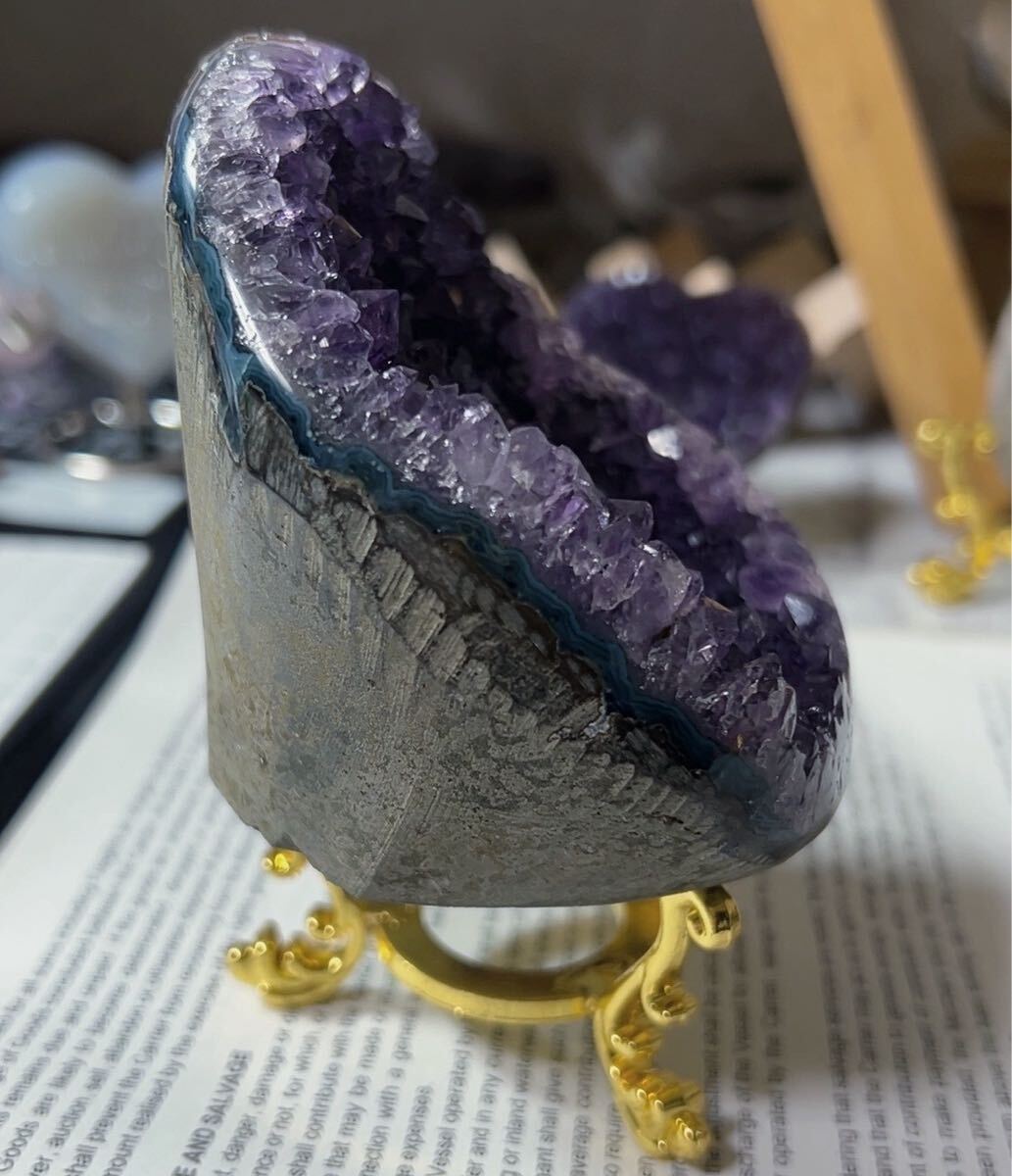 アメジスト クラスター【スダンド 金属製台座付き】|クラスター・原石・石|天然石 アメジストクラスター 品質にこだわった逸品!