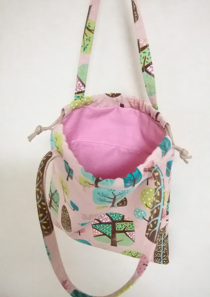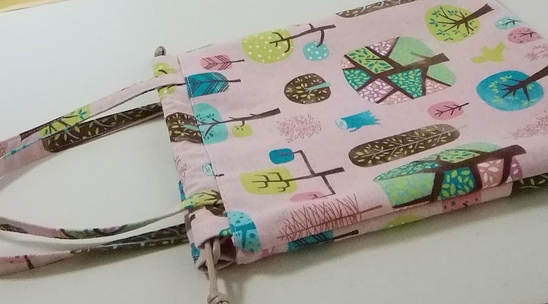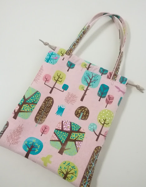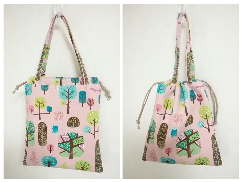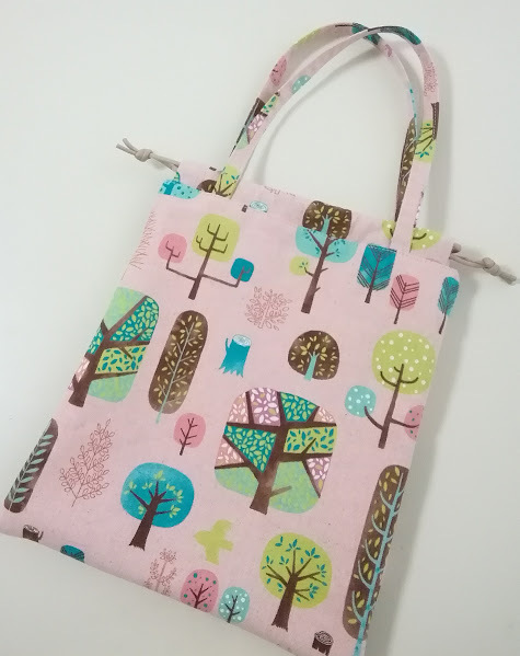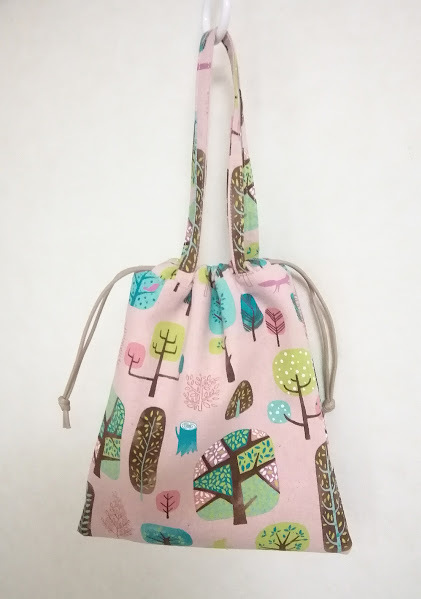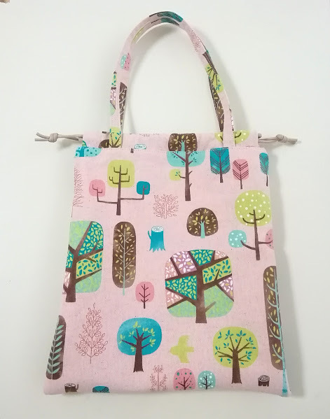 【SALE】ハンドメイド 〈巾着タイプ〉ぺたんこバッグ カラフルな森/アニマル〈B5サイズ〉内ポケット1コ