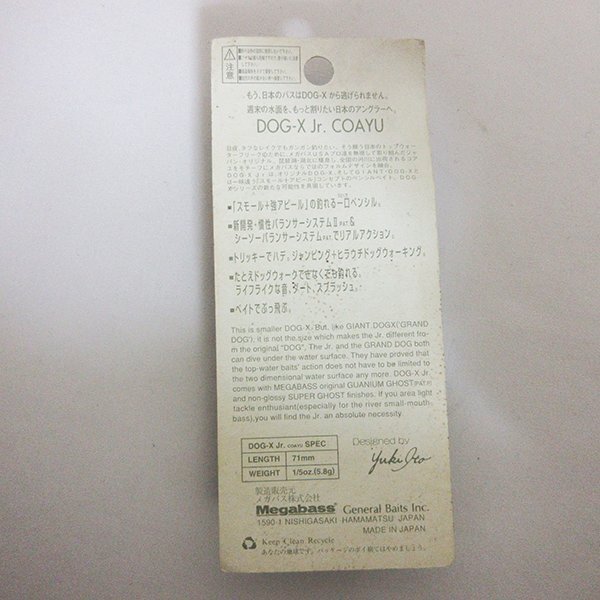*Megabass DOG-X Jr COAYU メガバス ドッグエックスジュニア コアユ ペンシル SGアユ ヴィンテージ ルアー 1999年*◆素材 : -◆カラー : SGアユ◆サイズ : 長さ 71(mm) / 重さ 1/5oz.(5.8g)◆外ランク : S / 内ランク : ◆付属品 : パッケージ(傷み有)◆状態 未開封品でございますが、保管期間がございます。 中古品、個人宅保管をご理解下さい。外観は画像もご確認ください。◆配送 日本郵便株式会社 ※一部地域は他配送会社使用