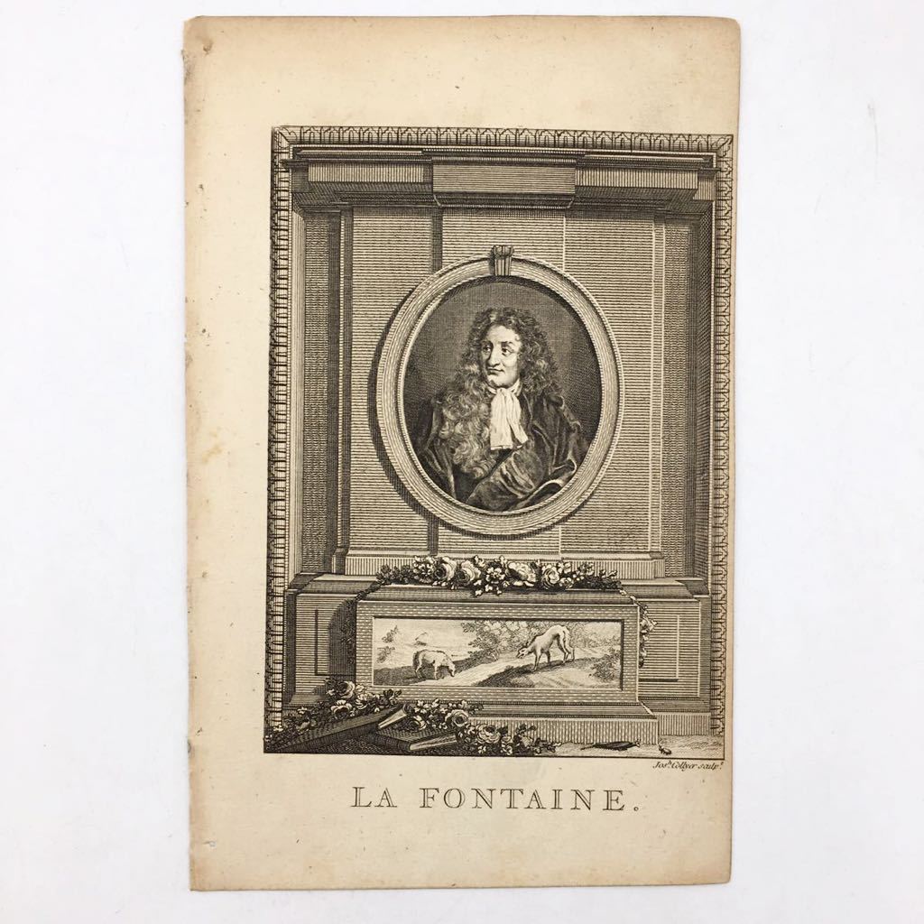 銅版画 ジャン・ド・ラ・フォンテーヌの肖像画 Joseph Collyer 1770年代 イギリス 大英博物館所蔵 アンティーク 博物画