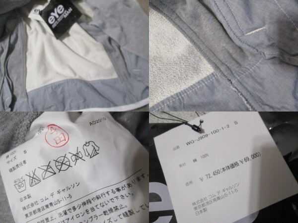 『送料レターパックライト円対応可能    2011SS   eYe COMME des GARCONS JUNYA WATANABE MAN     解体再構築スウェットライダースジャケット    メンズS    グレー』