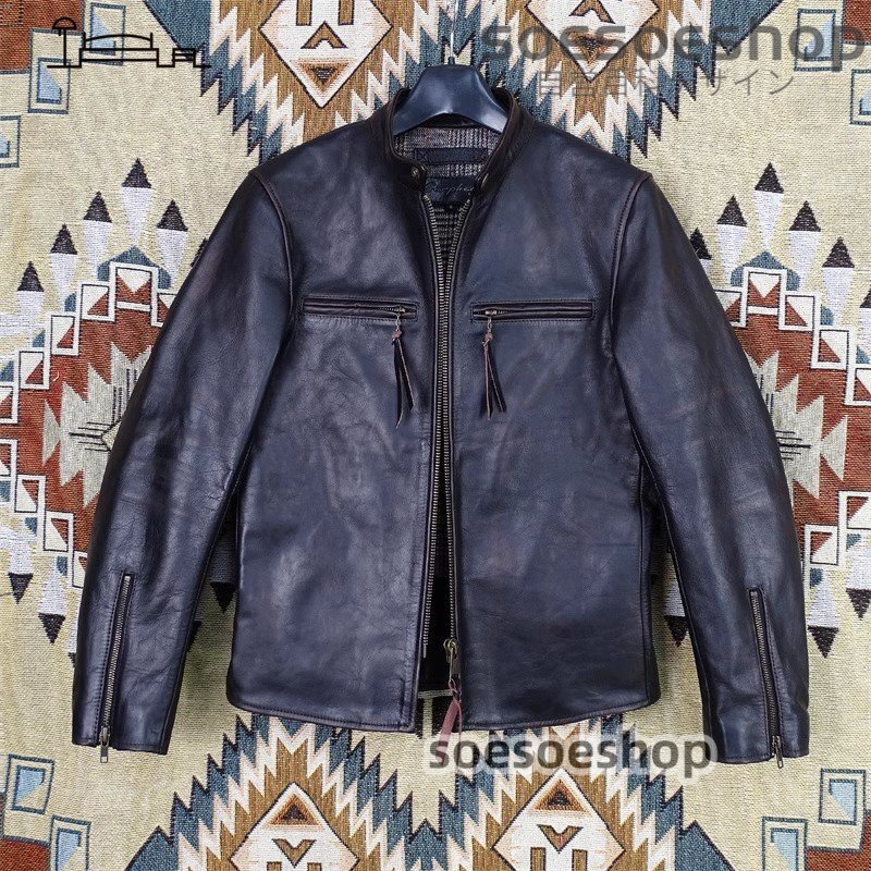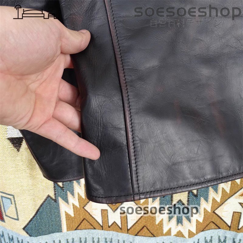 レザージャケット 上品 アメカジ 本革 イタリア馬革 ユーズド加工 茶芯ホースハイド 1.3mm ライダースジャケット  革ジャン S~5XL