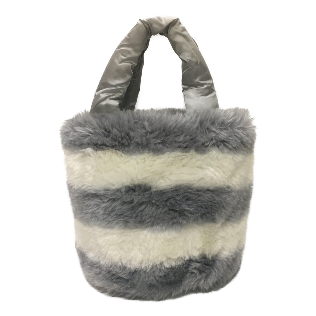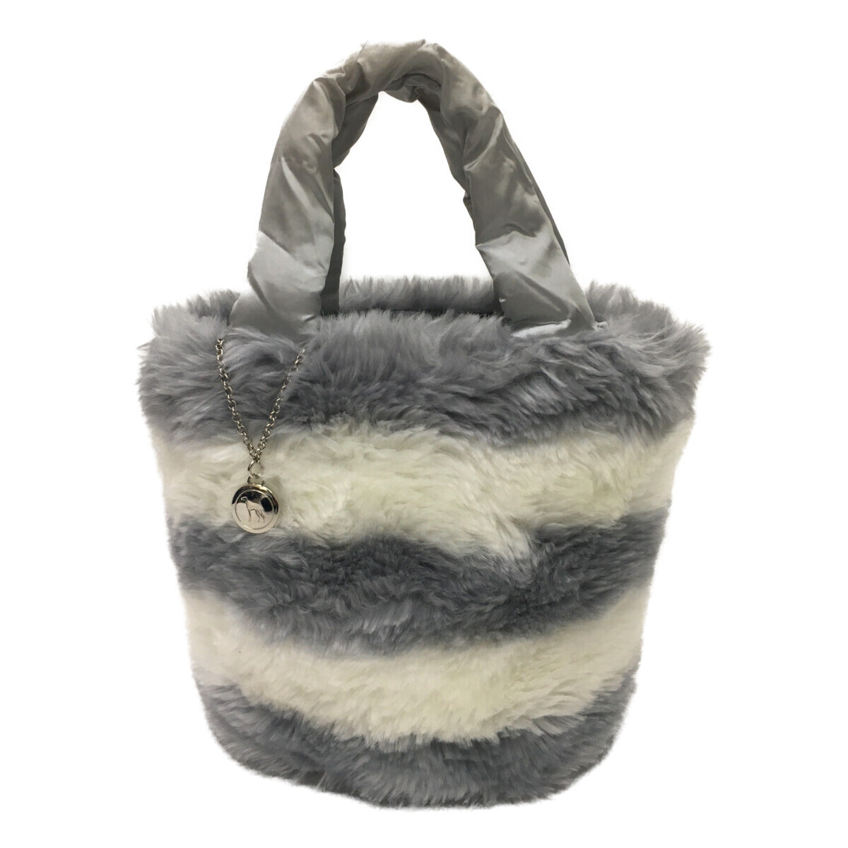 coco 中古【値下げ】 アダバット adabat カートバッグ ホワイト×グレー フェイクファー 3層式 小ぶり レターパックプラス発送可 109338