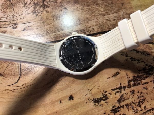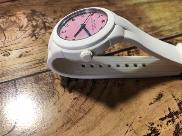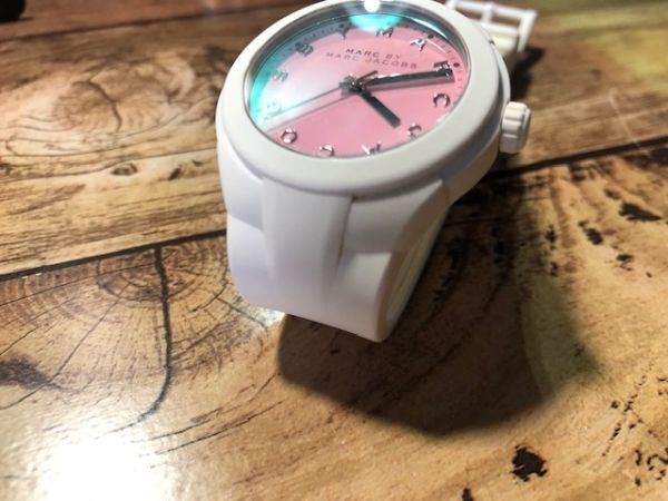 ご覧頂きありがとうございます。 ■商品内容 文字盤:ピンク系 ケース:横約38mm(リューズのぞく) 腕回り:ロゴ入純正ラバーベルト 素人実採寸につき多少の誤差はご容赦下さい。 付属品はなし。 可動品、数時間可動チェック済。 リューズ操作による時刻合わせ確認。 ガラス小さな薄点、薄線傷程度、良好。 裏蓋線小傷。ラバー部ベルト裏薄くすみ程度。 全体に良品レベルの状態。 ホワイト系ラバー×ピンク系ダイアル、 ポップでお洒落なデザインの雰囲気良いモデル。 |