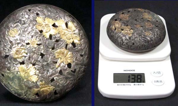 通常の5倍以上の銀で深彫、花手水模様★無傷・箱無☆★
