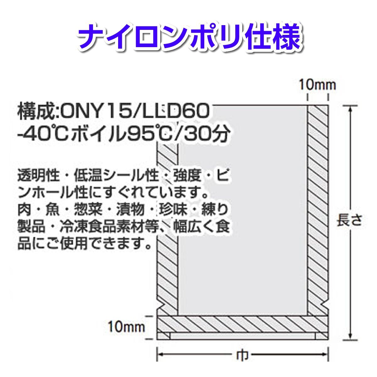 使用には、業務用の真空包装機かノズル式脱気包装機をお使い下さい。家庭用のエンボス袋専用機は使用不可です、お気を付けください。在庫がなくなり次第販売終了となります。