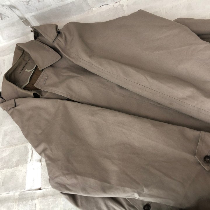 ▼SIZE:38 ▼実寸(平置き) ・肩幅:約83cm ・身幅:約58cm ・着丈:約83cm ※あくまでも参考サイズですのでご了承下さい。 ▼素材:写真参照 ▼color:ベージュ ※色の判断は出品者の主観で判断しております。 メーカーとカラーの表現が異なる場合があります。 ▼商品説明 ・ライナーの取り外しが可能です。 ・一般的な使用感があります。 ・多少の毛羽立ち等があります。 ・内側に汚れがあります。(画像参照) ・着用に支障をきたす汚れ、ダメージは見受けられません。 こちらの商品はヴィンテージ商品です。写真に写らない汚れ、キズがある場合がございます。 予めご了承の上、ヴィンテージ商品、古着にご理解頂ける方のみ入札をお願いいたします。 ※こちらの商品は、お宝あっとマーケット町田店(直営店)と併売しております。 当店にてご入札が確認出来次第、店舗での販売を終了させていただきます。 また、店舗で売れた際はYahoo!オークションをキャンセルとさせていただきます。 ご落札していただいても、時間差で売切れの場合がございます。 予めご了承の程よろしくお願い致します。 商品状態は当店にて検品、確認を行い商品情報へ記載しておりますが、 記載外の微細な汚れ、シワ、スレ、ダメージなどがある場合がございます。 予めご了承頂けますようお願い致します。 |