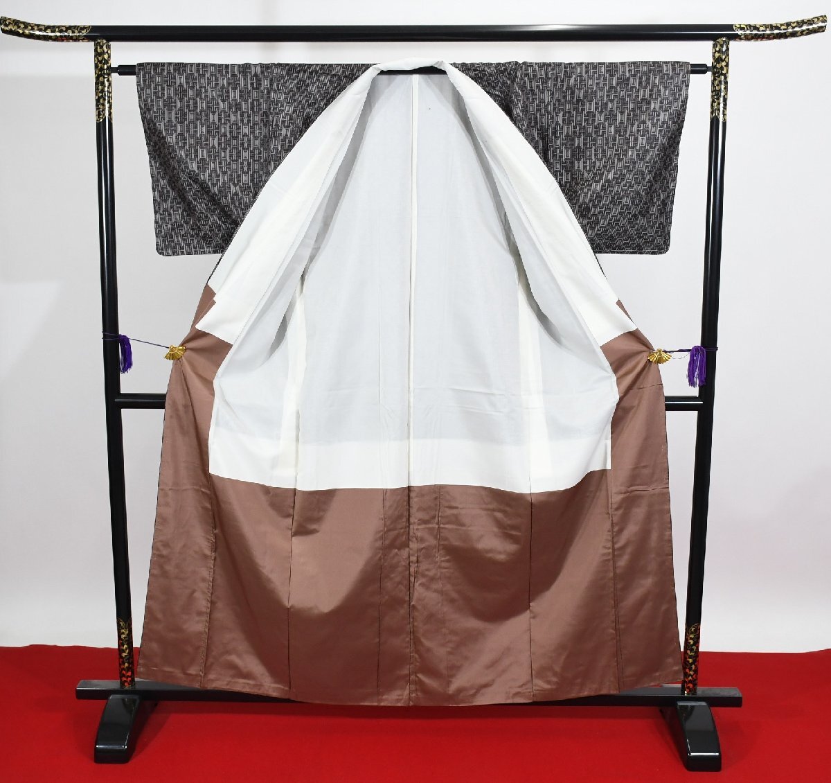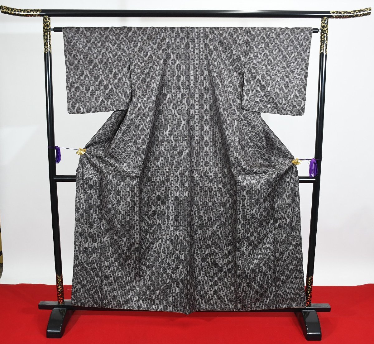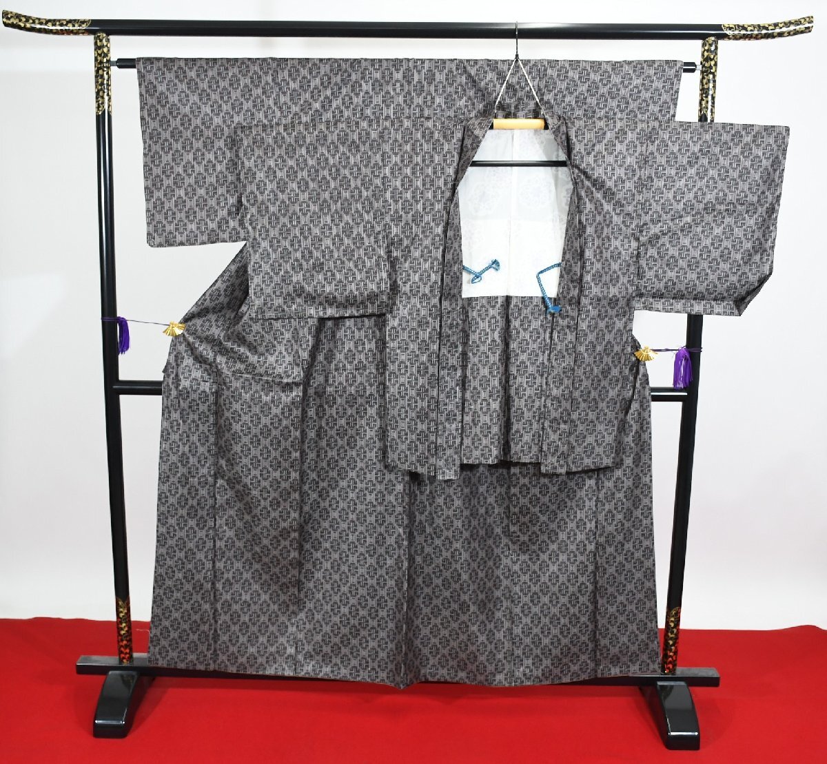 サイズ | 【着物】 ▼身丈 (背中から) 153cm ▼裄丈 63cm ▼袖丈 45cm ▼後巾 30.5cm ▼前巾 22.5cm 【付属】 ▼身丈 (背中から) 77cm ▼裄丈 63cm ▼袖丈 44.5cm |