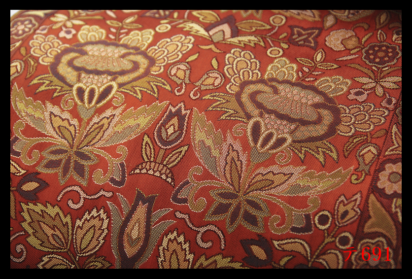 蔵【テ691】西陣逸品 更紗紋 赤茶色地 気品豊かに 正絹六通高級美術袋帯 ◇検簪着物名古屋帯和装小物帯締め
