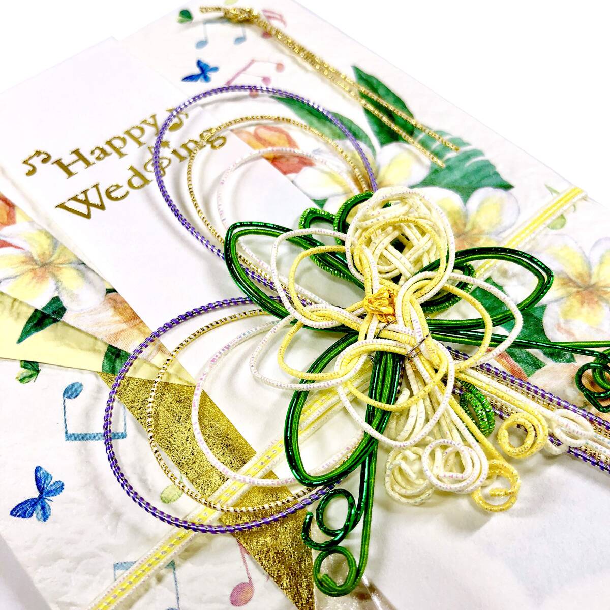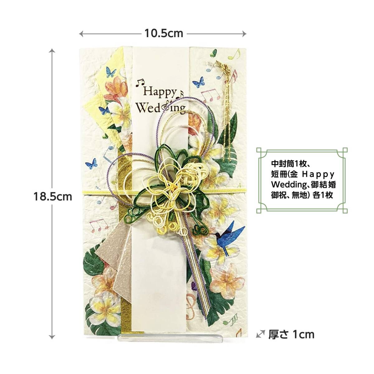 【その他】中包1枚・短冊3枚(Happy Wedding・御結婚御祝・無地)、プルメリアは大切な人の幸せを願う花です。3万~5万目安の新札で10万円まで入ります。