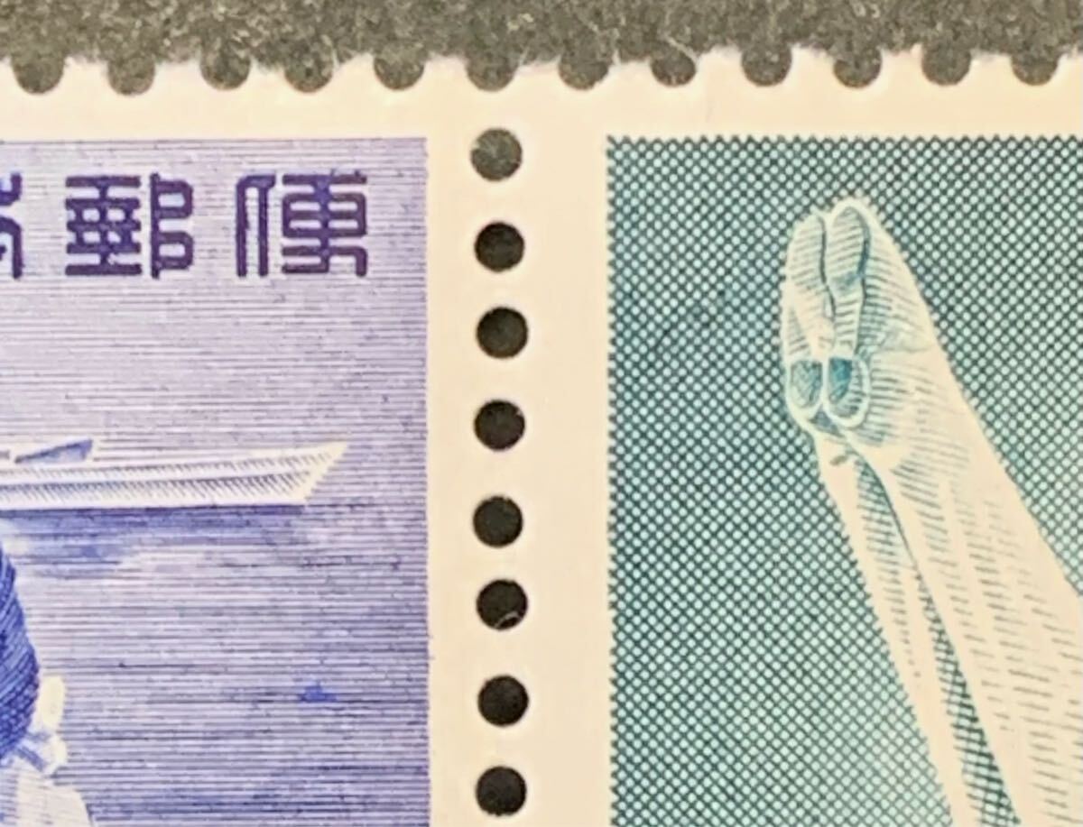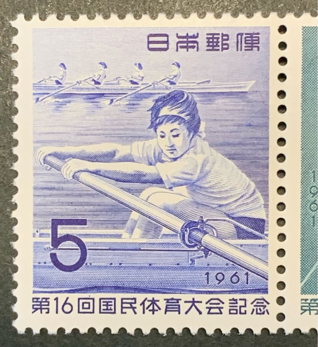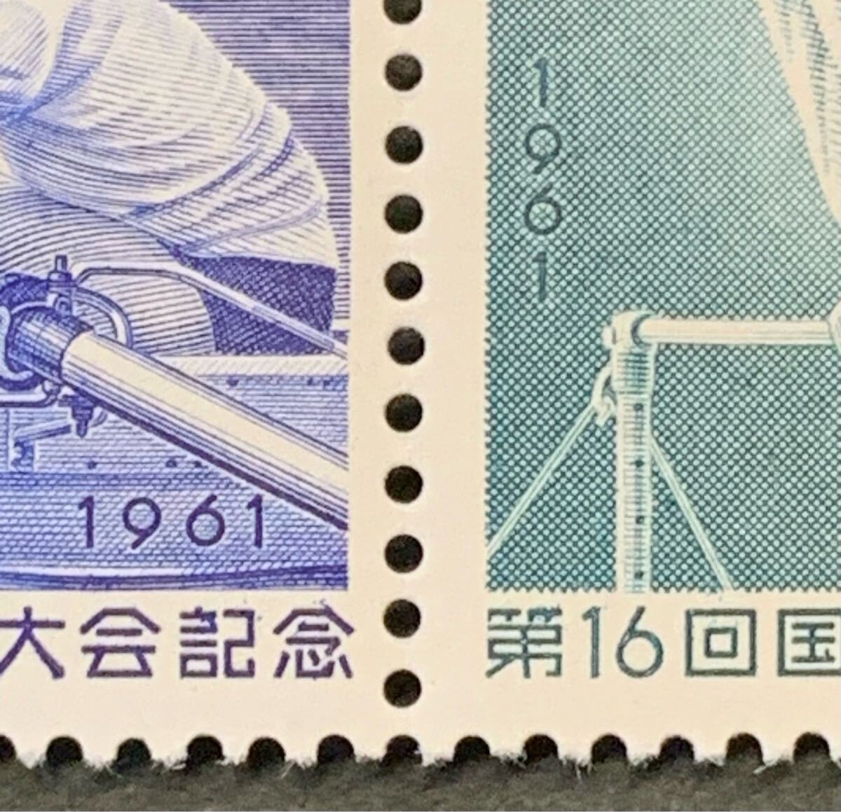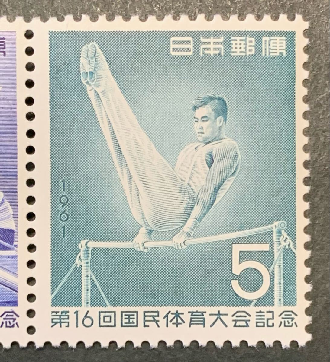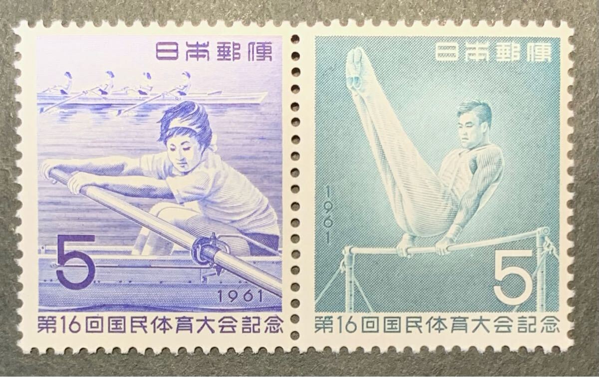 ●【未使用】【美品】2枚組(2種連印)切手 第16回国民体育大会記念(国体) 5円+5円 昭和36年 鉄棒・漕艇 匿名配送