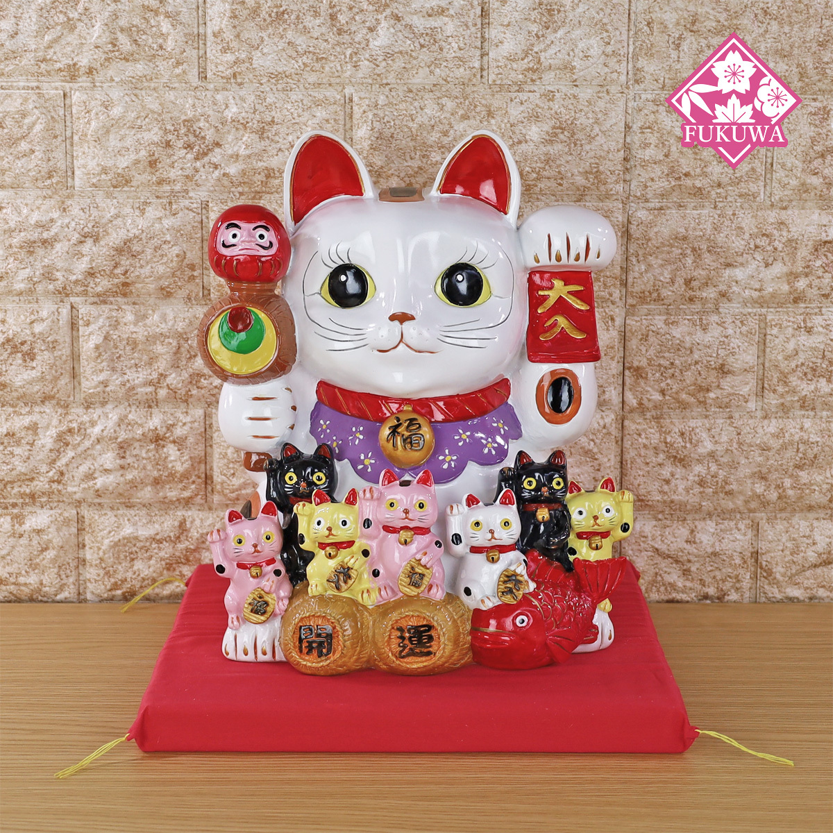その三毛猫の雄をモチーフに製作された招き猫です。