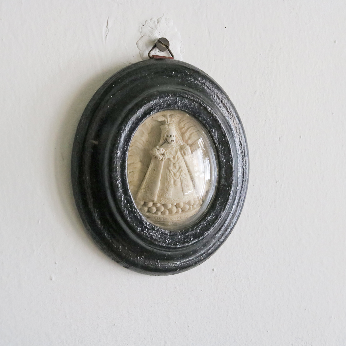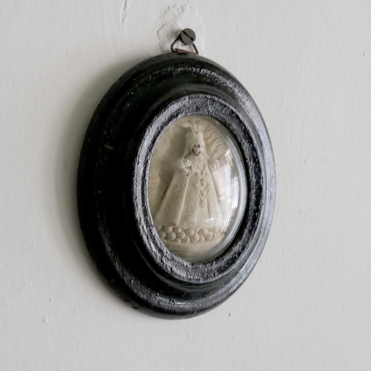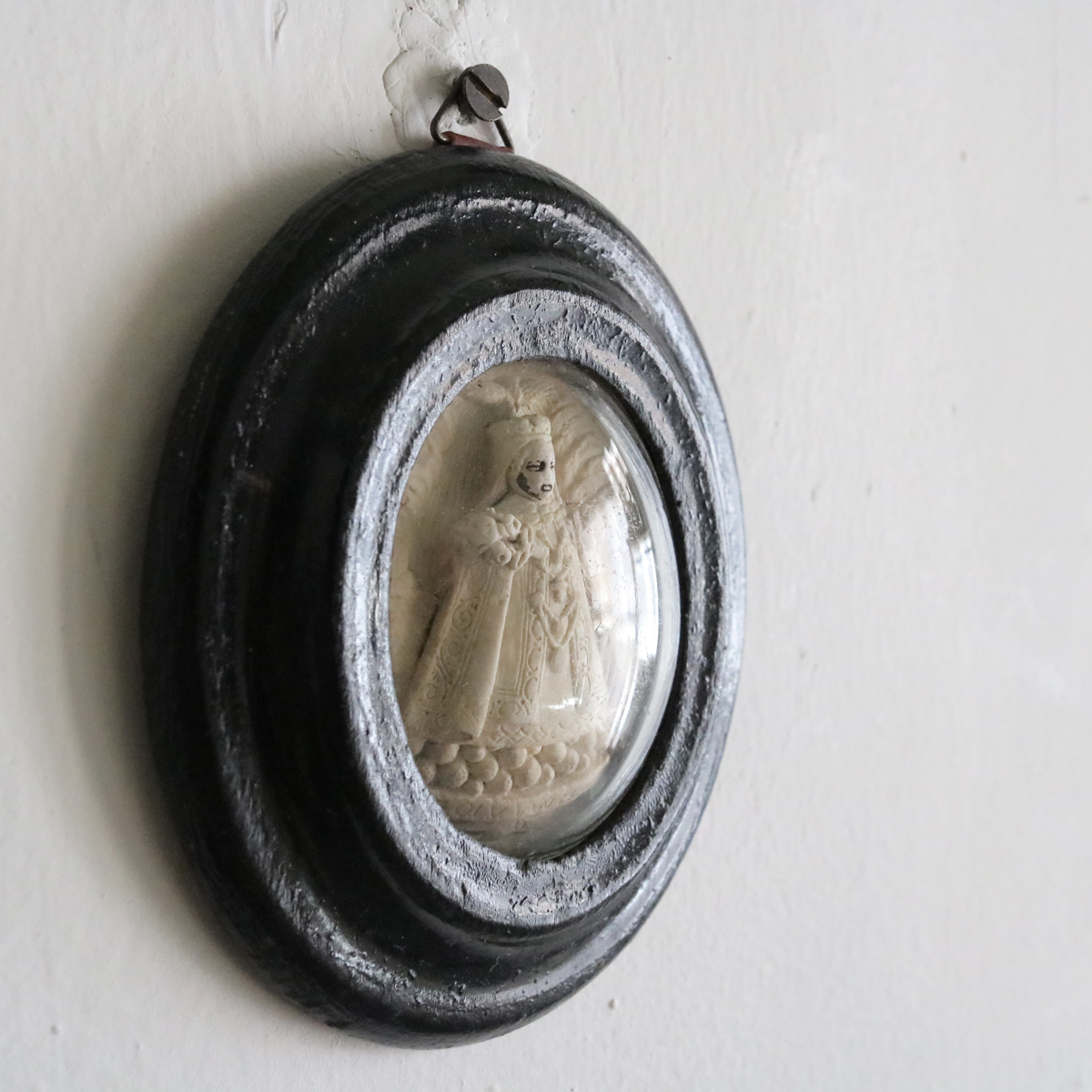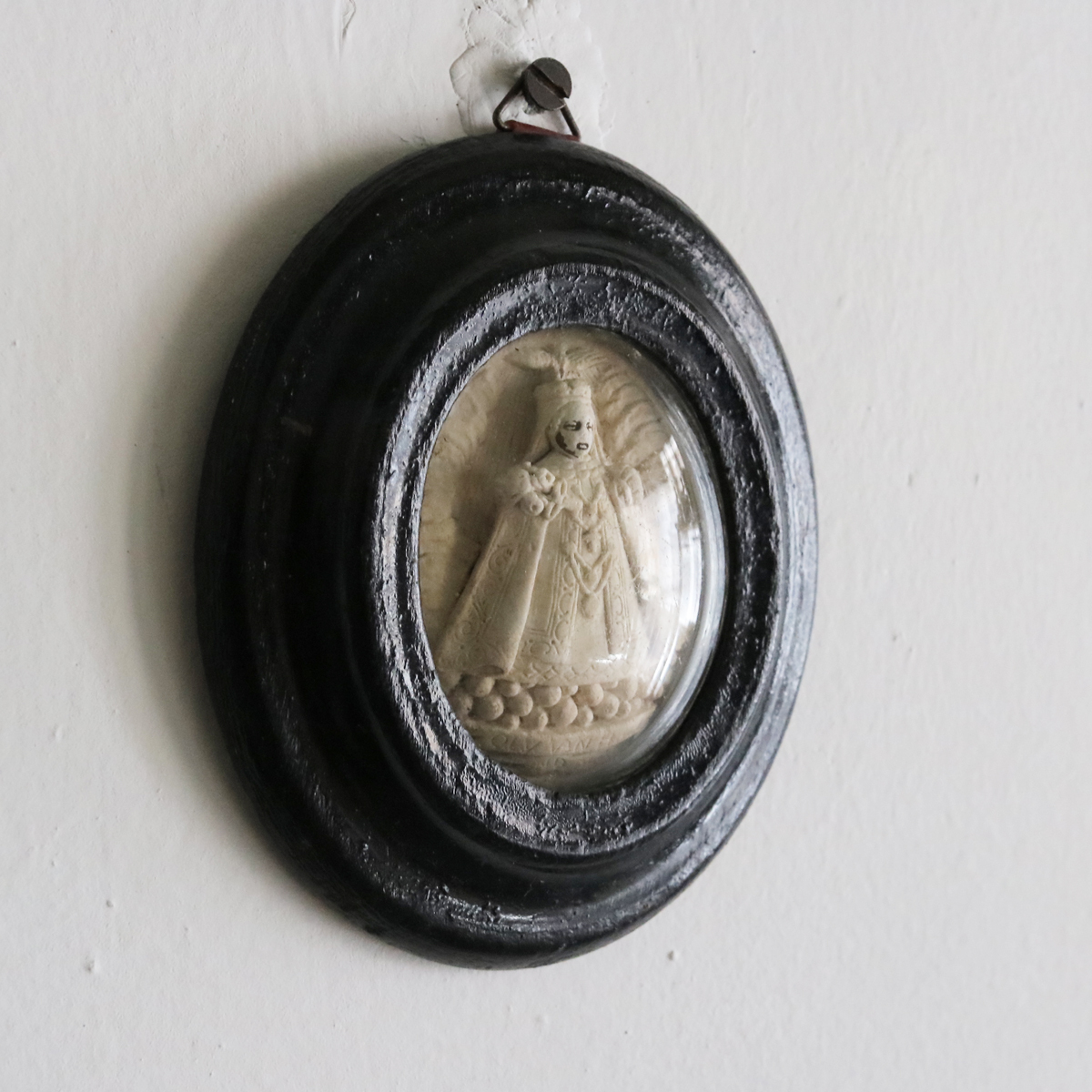 19世紀 1800年代 ガラスドーム 木製 黒いマリア 黒マリア 教会 キリスト マリア フランスアンティーク 聖品 装飾 クロス 十字架 メダイ HAL