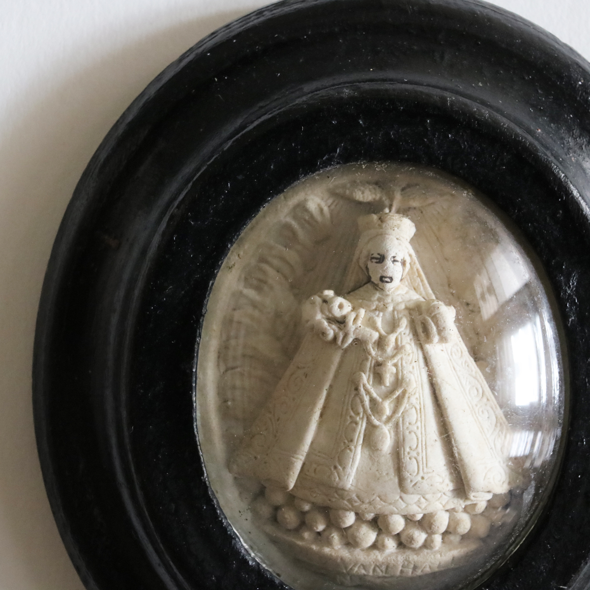 19世紀 1800年代 ガラスドーム 聖母子像 聖母マリア 教会 キリスト マリア フランスアンティーク 聖品 装飾 クロス 十字架 メダイ HAL