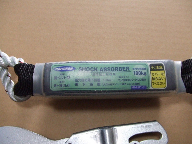 安全帯 TSUYORON SHOCK ABSORBER NM-A441-D1 胴ベルト型 ランヤード 使用可能質量100kg