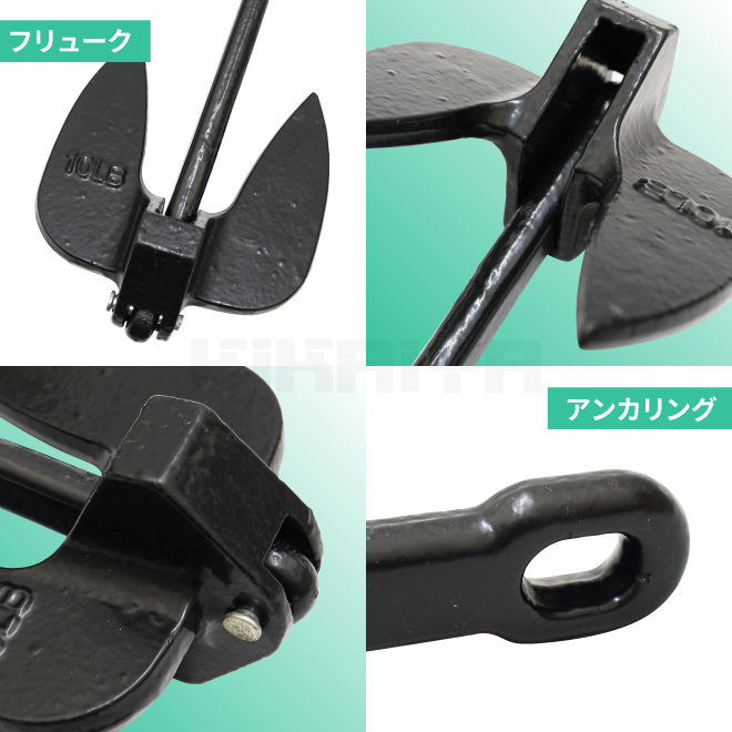 ・コンパクトでジェットユーザーに人気!PEコーティングアンカー ・PEコーティングで耐久性があり、錆びにくく、運搬時に船体を傷つけにくい ・爪が海底にめり込んでアンカリングするので、しっかりしたホールド性があります ・ロープ角度を30~40°にするとホールド性があがります ・砂地や砂利、泥などの地質でアンカリングしやすい ・ジェットスキーやミニボートなどに最適です |