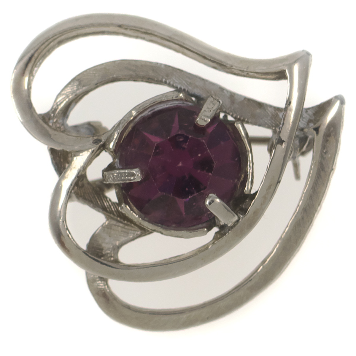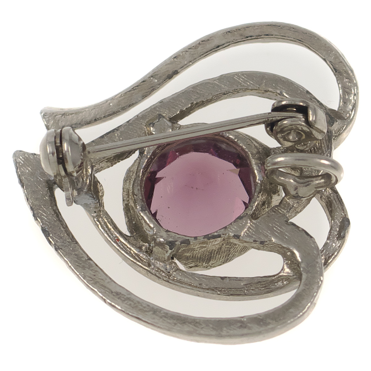UK3265◆ ハートモチーフ パープル系ラインストーン 色石 ケルト 英国 イギリス ◆ ヴィンテージブローチ ◆