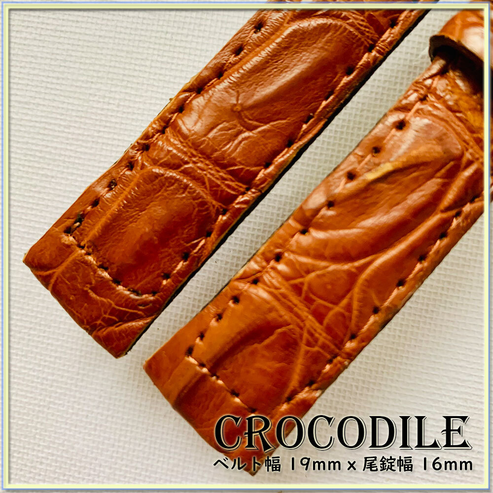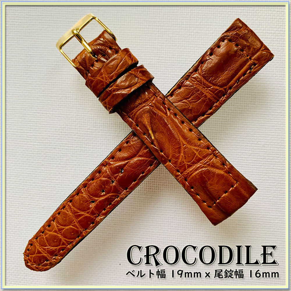 SALE!19mm 1点物 別注 本革 クロコダイル ワニ革 時計ベルト イタリアンブラウン ITALIAN BROWN 背ワニ HAND MADE 高品質 クロコ 限定