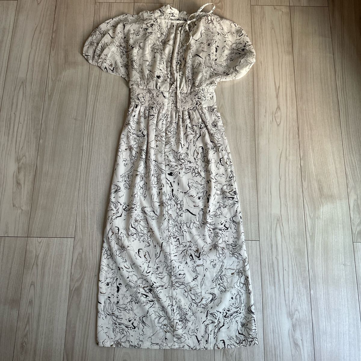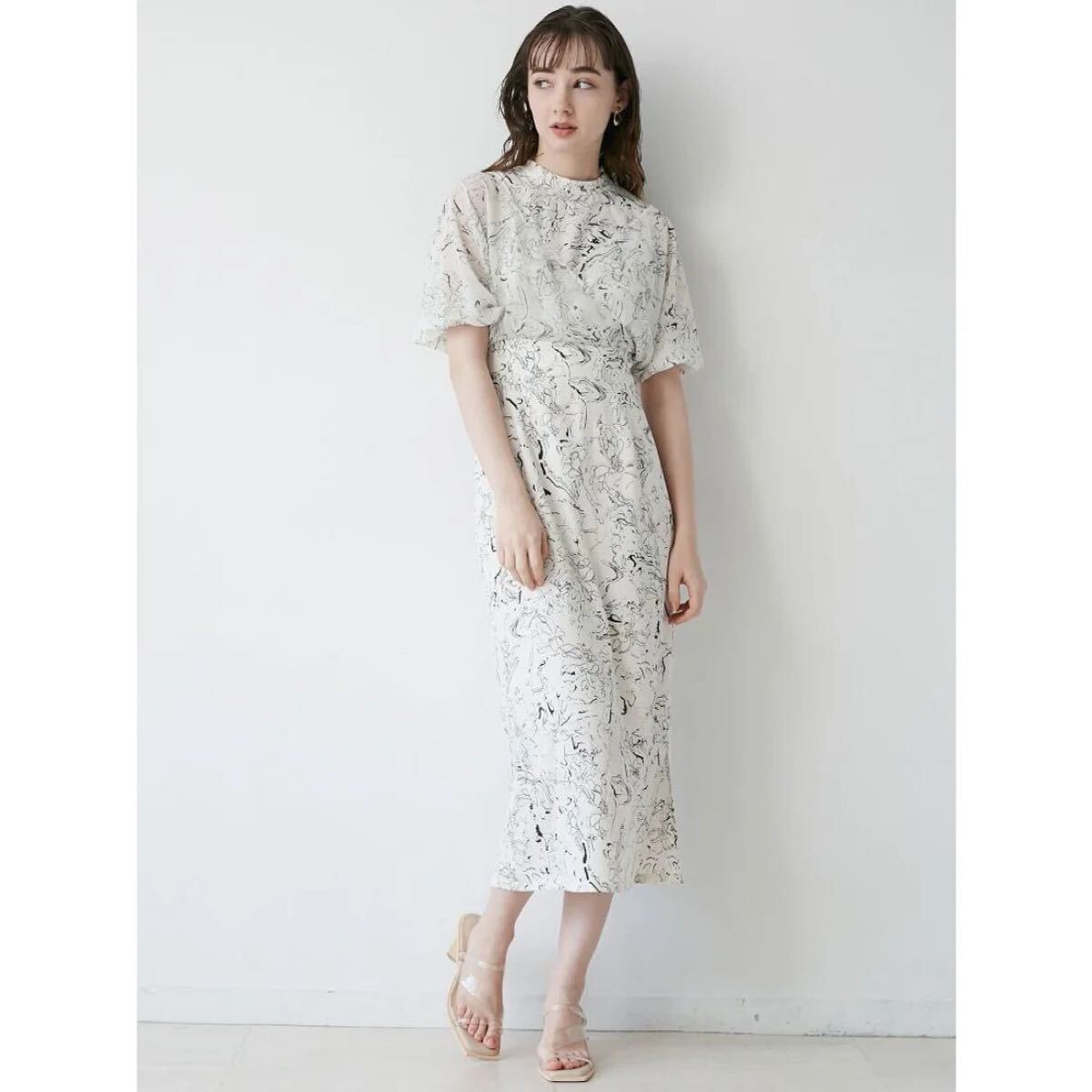 ペイントしたようなフラワー柄が品のあるワンピース。