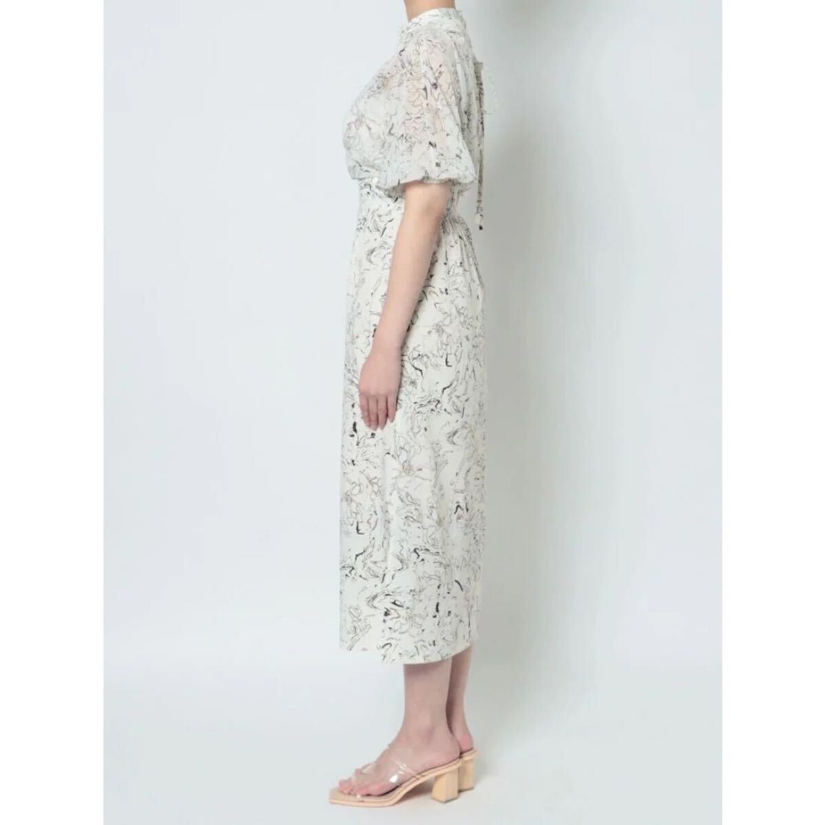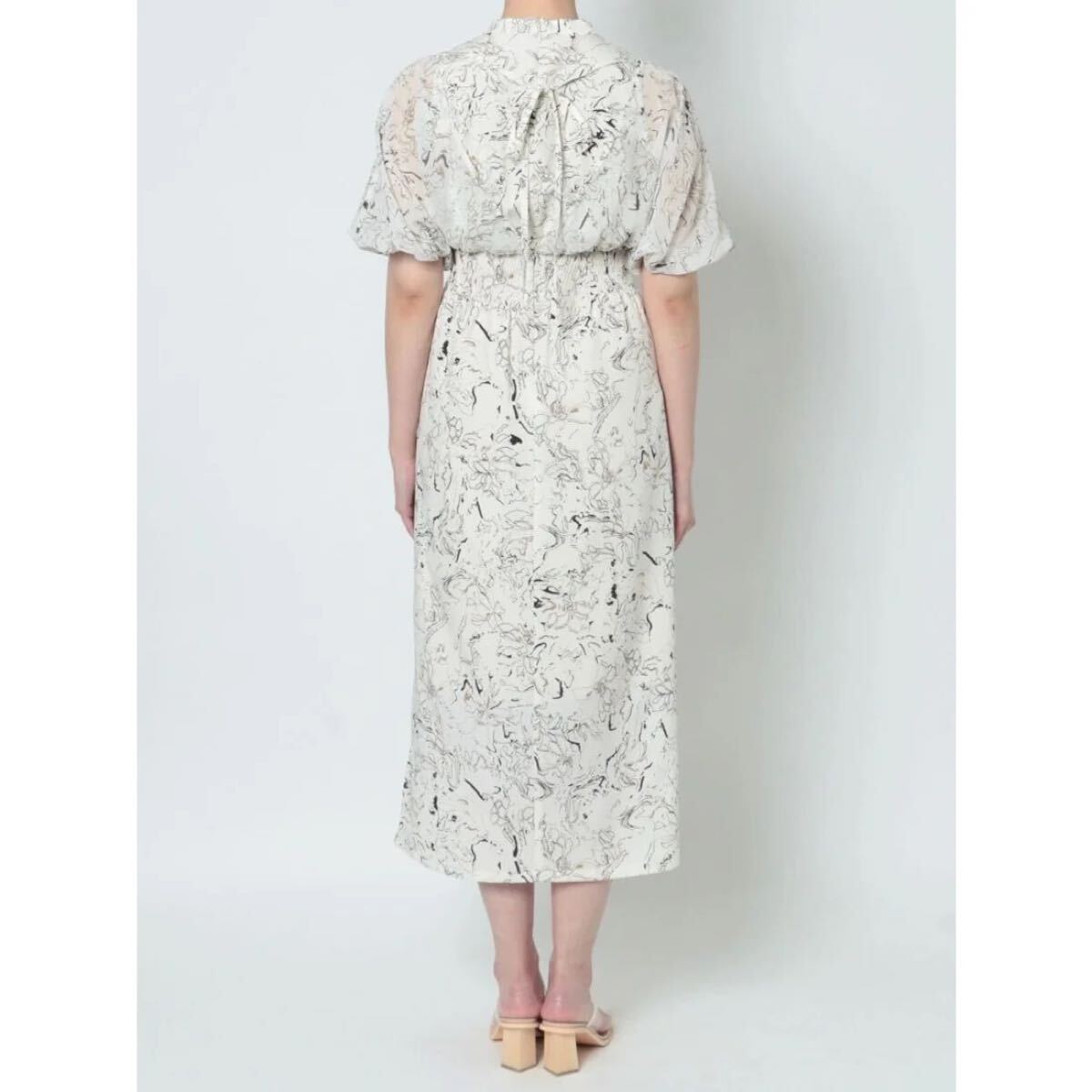 同柄のシアーな素材をカシュクール部分に使用し抜け感を出しています。