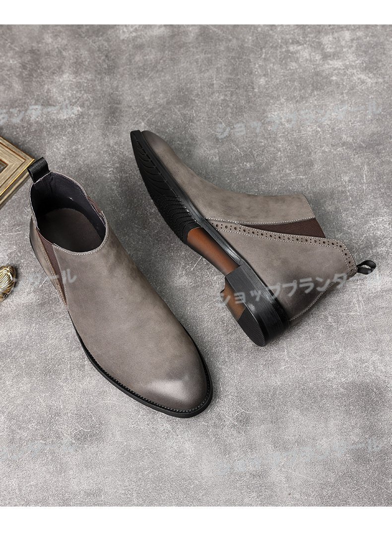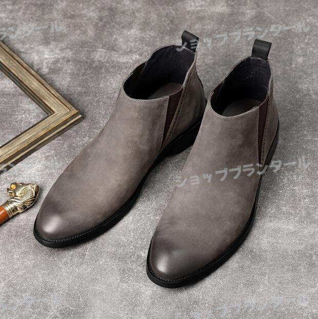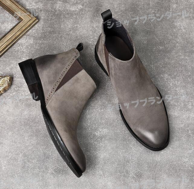 極美品★ショートブーツ 超希少 職人手作り メンズブーツ イギリス風 ビジネスシューズ 本革 レザーシューズ 紳士靴 革靴 グレー24.0~27cm