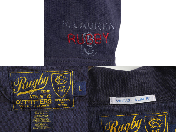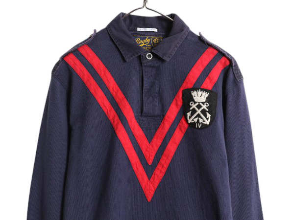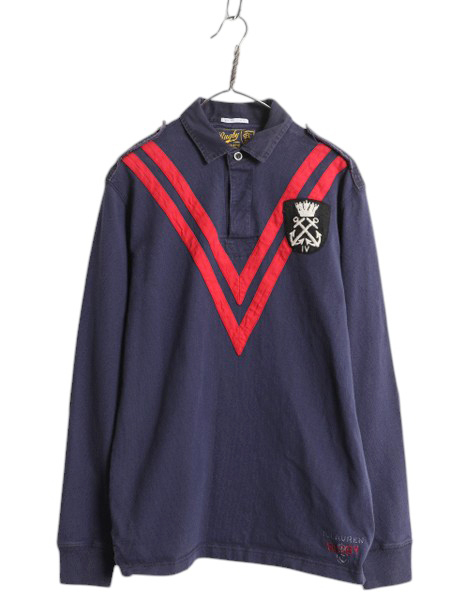 商品名 | ヴィンテージ 加工 ラグビー ラルフローレン ラガーシャツ メンズ L 古着 長袖シャツ コットン フェルト ワッペン マチ付き スリムフィット |