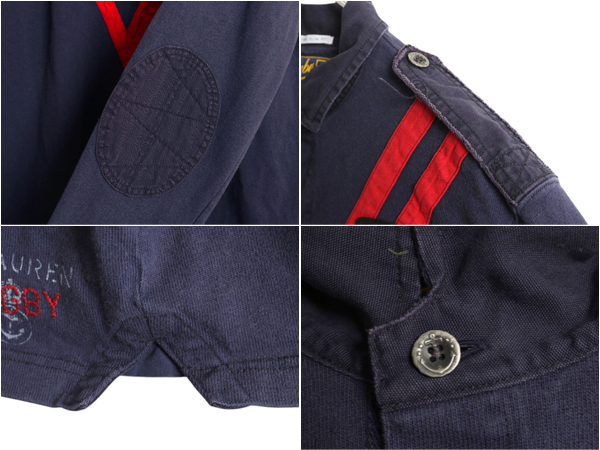 人気ブランドRUGBY RALPH LAURENの長袖ラガーシャツです。 ラルフローレンの伝統やスピリットを受け継ぎ 若い世代向けに展開され人気のあった 【RUGBY】 現在は生産されていない入手困難なラインの商品 モデル名は、VINTAGE SLIM FIT 素材は、100% COTTON ( コットン ) しっかりとした厚手のヘビーウェイト、ラガーシャツ素材を使用 ボタンは全て、アンカー(イカリ) 刻印入りの メタルボタン を使用 襟・前立て・ボタンエンドに補強 しっかりとした生地を2重にし、 キルティング補強が施されたエルボーパッチ サイドスリットにマチ、肩にエポレット付き 左胸にもアンカーモチーフのフェルトワッペン 左裾にステンシル風のロゴと、ハンドステッチ調のロゴ刺繍入り エポレット・裾・袖部分に程よいヴィンテージ加工が施されています 雰囲気の良いナス紺ボ ディーに映えるレッドのVライン切替 ラルフローレンらしい細部までこだわった豪華なグッドデザイン 本格的ラガーシャツ同様のしっかりとした作り ラルフローレンらしいスタイリッシュさもある商品です |